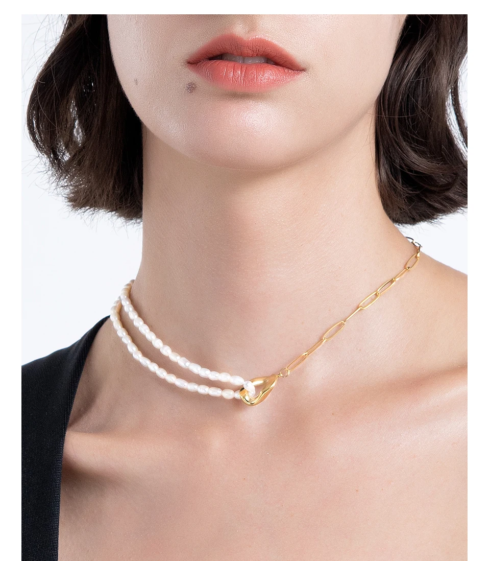 Женское Ожерелье с натуральным жемчугом, из нержавеющей стали