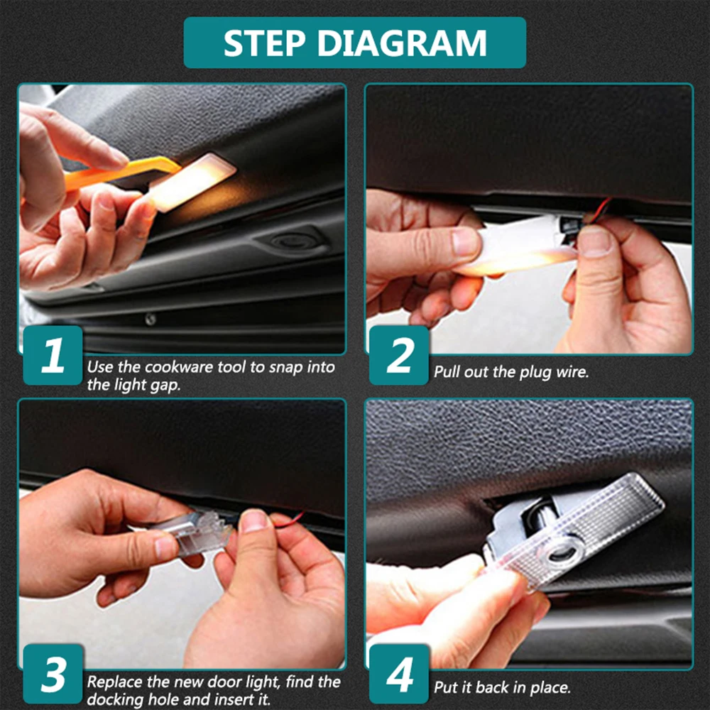 Легко установить: непосредственно заменить оригинальный дверной светильник, нет необходимости сверлить отверстие, без проводов.