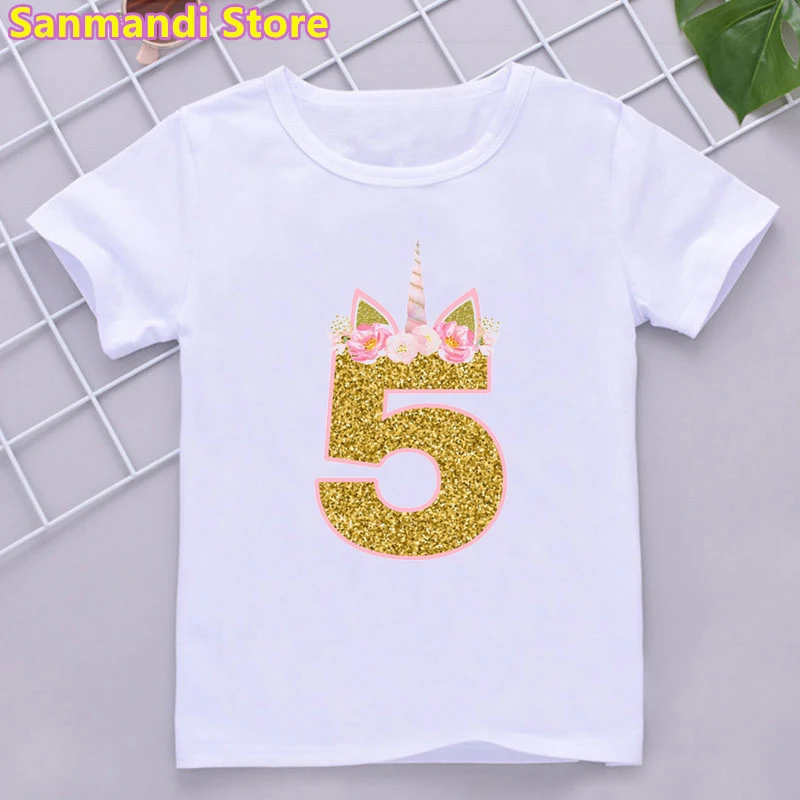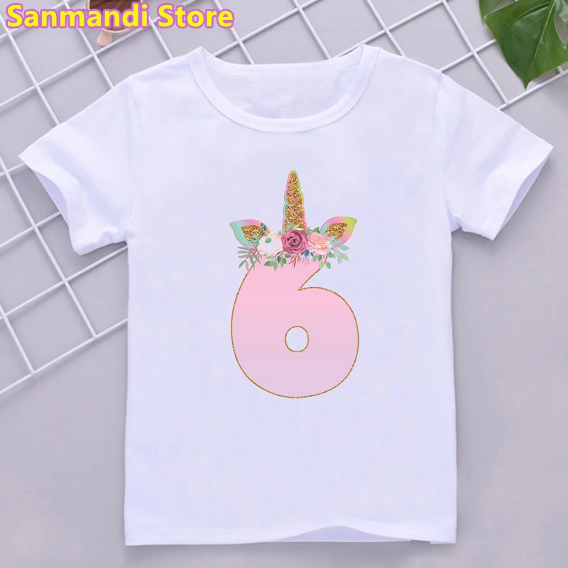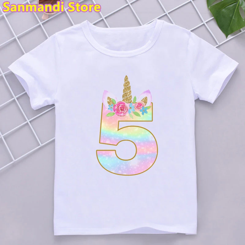 Футболка детская с радужным принтом единорога, милая Одежда для девочек, подарок на день рождения, 3, 5, 6, 9, 10