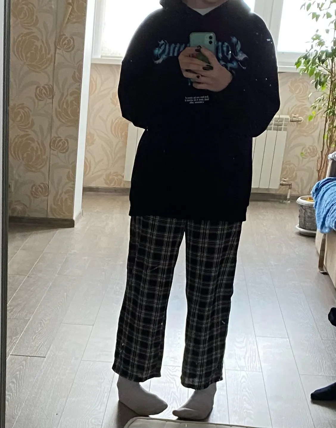 Брюки в целом довольно хорошие, ткань очень тонкая, но в любом случае я ожидал, что она придет от Aliexpress, размер подходит мне идеально (я измеряю ок. 165 см, и я заказал размер S) находится в хорошем состоянии, и я думаю, что я буду использовать его больше как пижаму, чем выходить xD