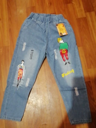 Джинсы для девочек; Сезон весна-осень; Джинсы для маленьких девочек с дырками; Хлопковые модные детские брюки; Джинсовые От 3 до 10 лет с принтом из мультфильма