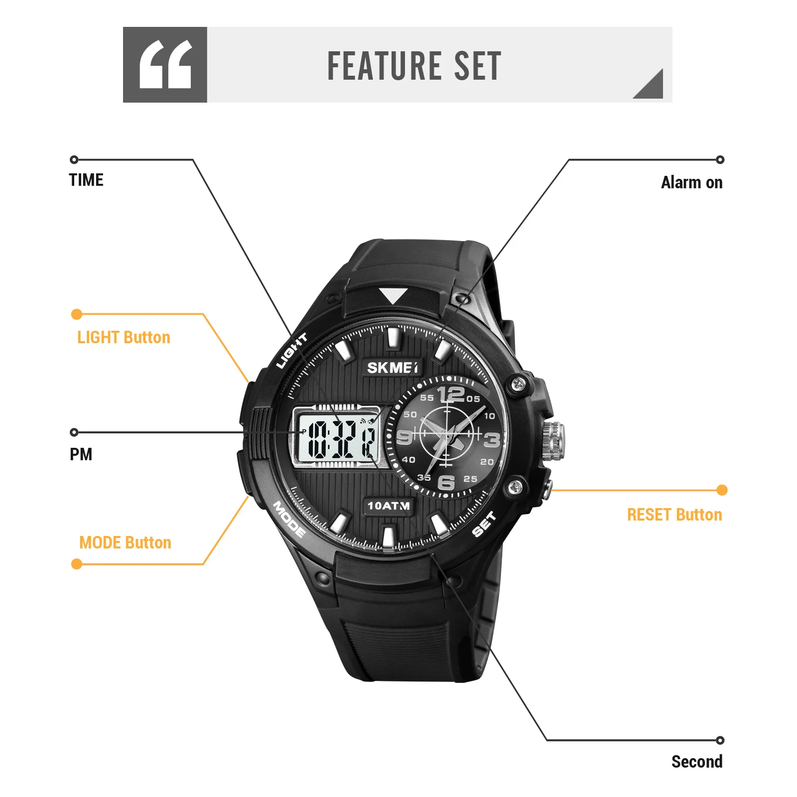 Часы мужские электронные с хронографом и светодиодной подсветкой, Водонепроницаемость 100 бар