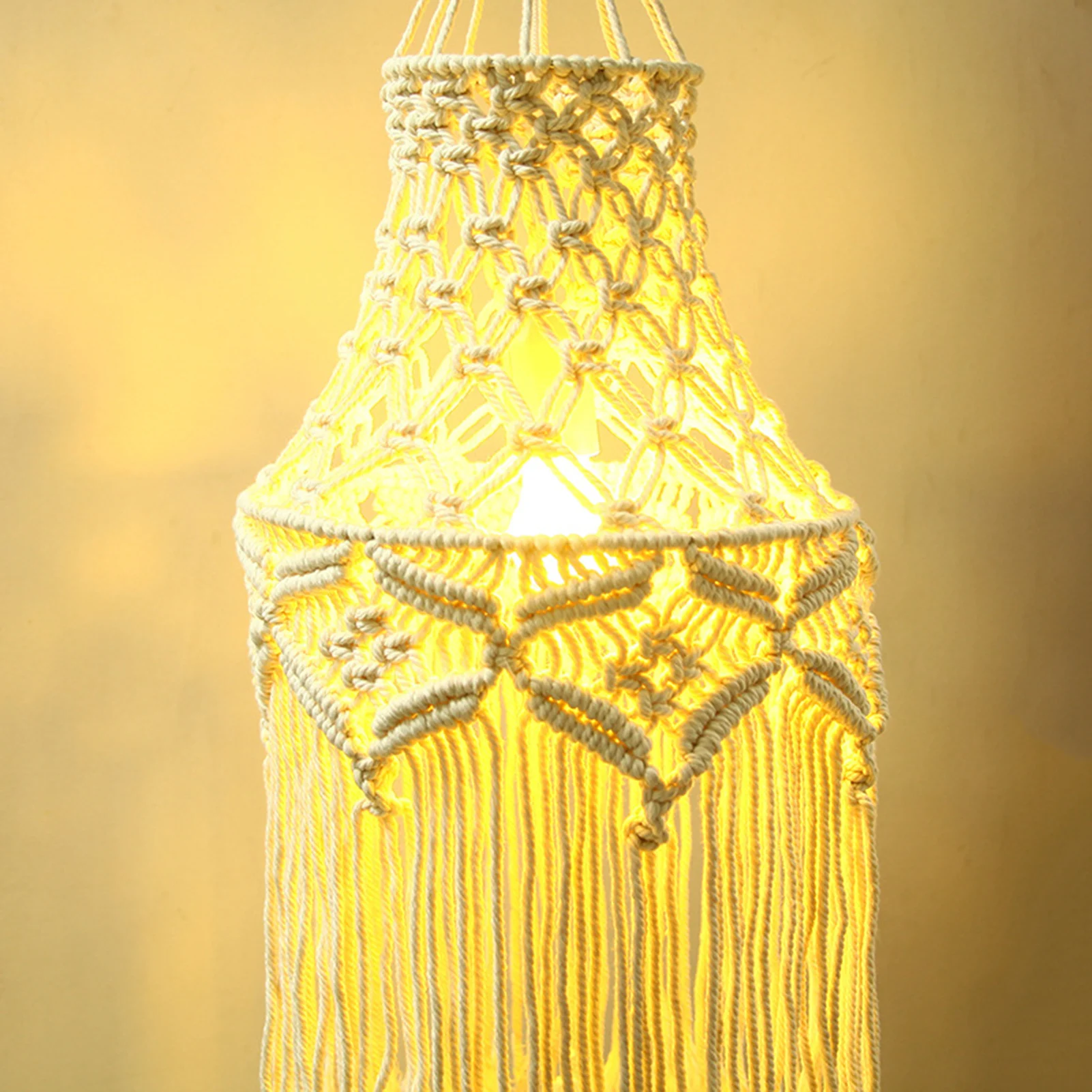 Светильник для макраме ручной работы, люстра с подвесной лампой, декоративный светильник в стиле бохо, светильник для макраме, Тканый гобелен