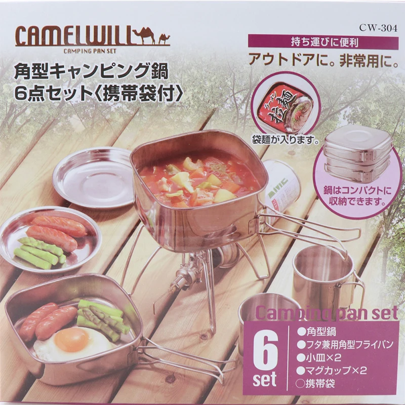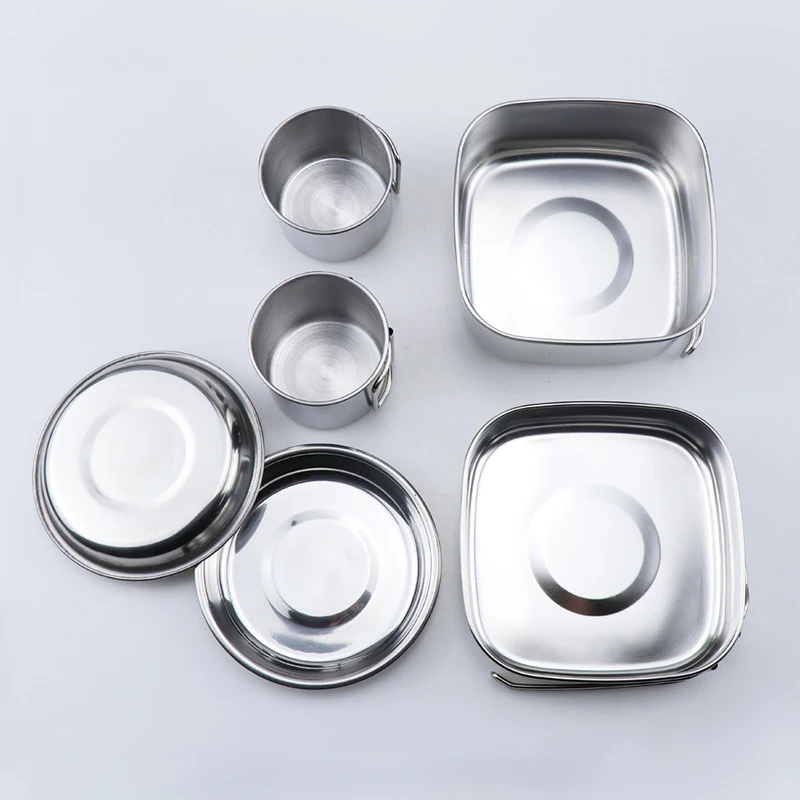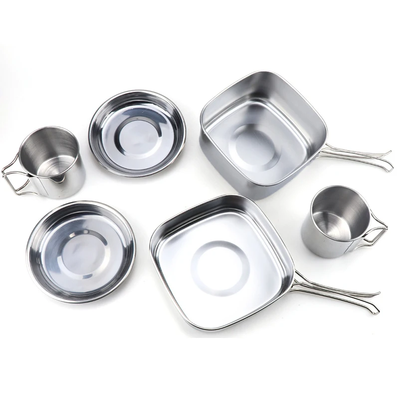Набор посуды для кемпинга на открытом воздухе, кастрюля из нержавеющей стали, сковорода, чашка для тушения, тарелка, Ланч-бокс, походная посуда