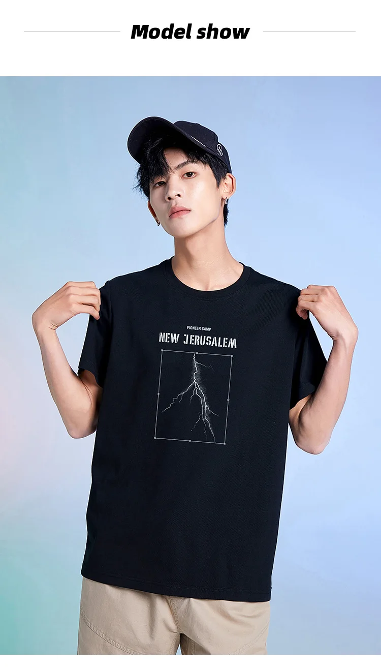 Футболка Pioneer Camp Мужская в стиле оверсайз, 100% хлопок, с принтом молнии, летняя одежда, XTK01102034