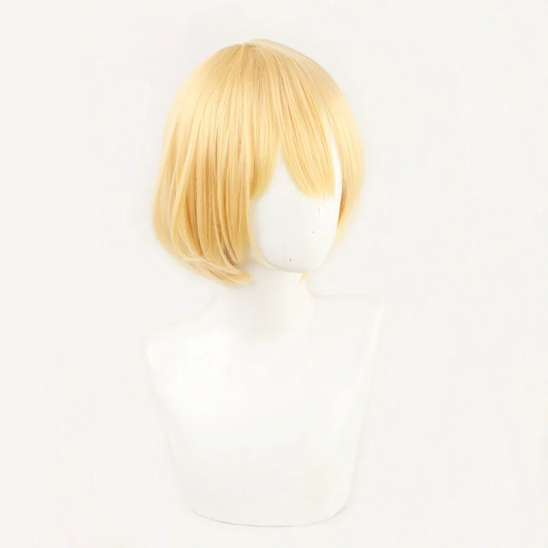 Vtuber Youtuber Hololive Amelia Ватсон Косплэй синтетический термостойкий парик, Короткие золотистые волосы парик вечеринка на Хэллоуин + бесплатная парик Кепки