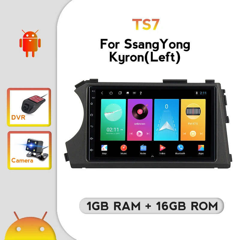 Автомагнитола 2 Din HD 1024X600, четырехъядерный процессор, Android 8,1, 1 ГБ ОЗУ, DVD, для Ssang Yong SsangYong Kyron Actyon 2005-2013, GPS, радио, стерео, Carplay