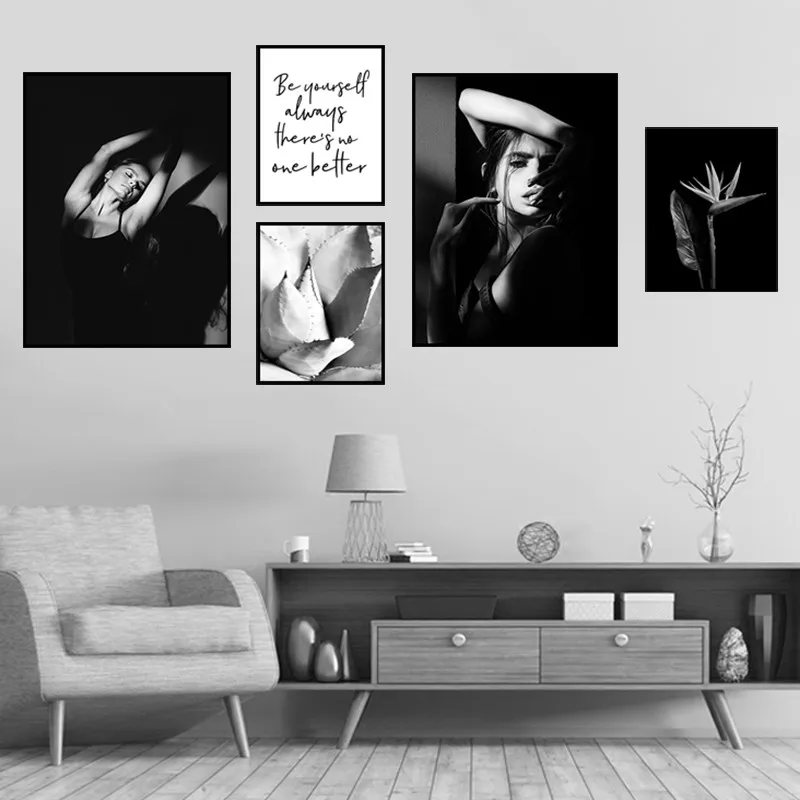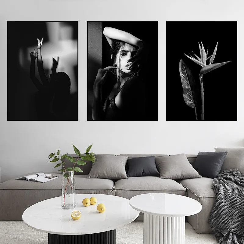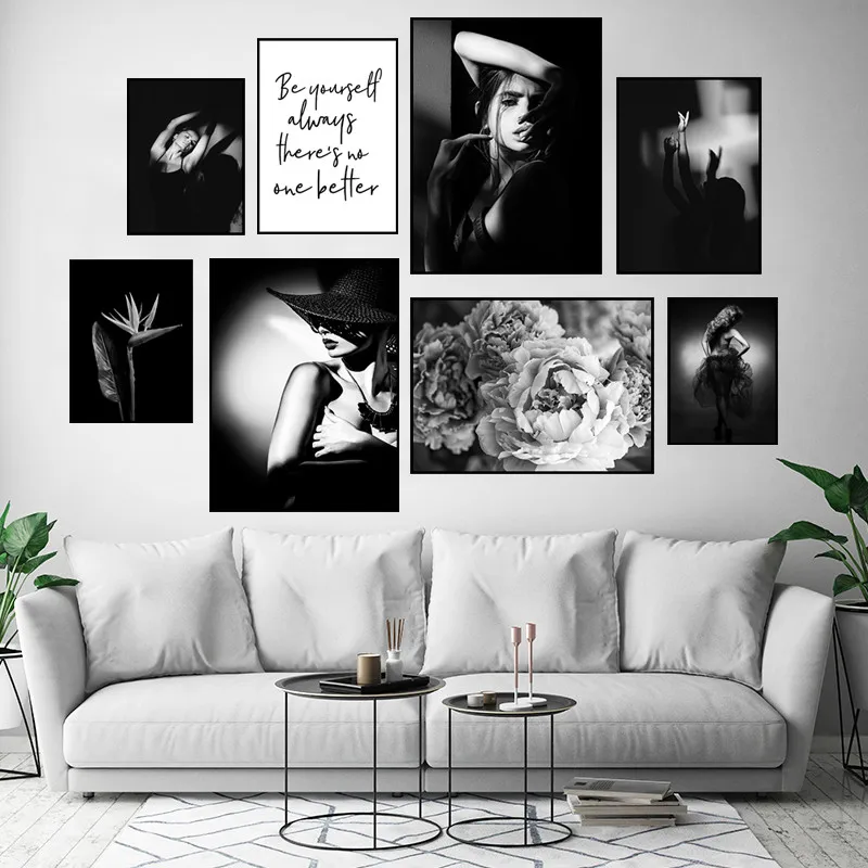 Черно-белая Настенная картина с изображением танцовщицы девушки, украшение для спальни, плакат с цветами, Современная Картина на холсте, декор для комнаты HB002