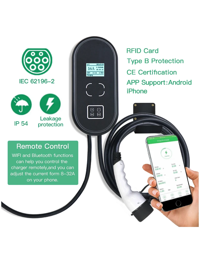 -Высокая совместимость. Он может заряжать все EVs, изготовленные в Европе, правильно и эффективно.-Простота установки. Продукты отправляются клиентам с соответствующими установочными инструментами.-Содержит интеллектуальный чип. Он может автоматически восстанавливать мелкие проблемы с зарядкой во время зарядки. Когда происходит ошибка, свет мигает разными способами, чтобы указать различные проблемы.