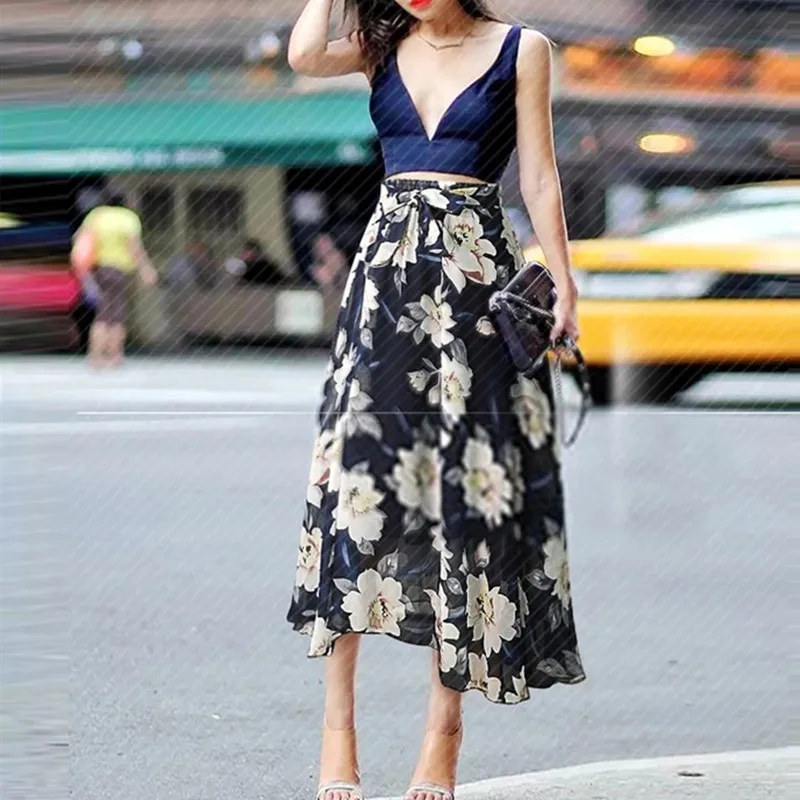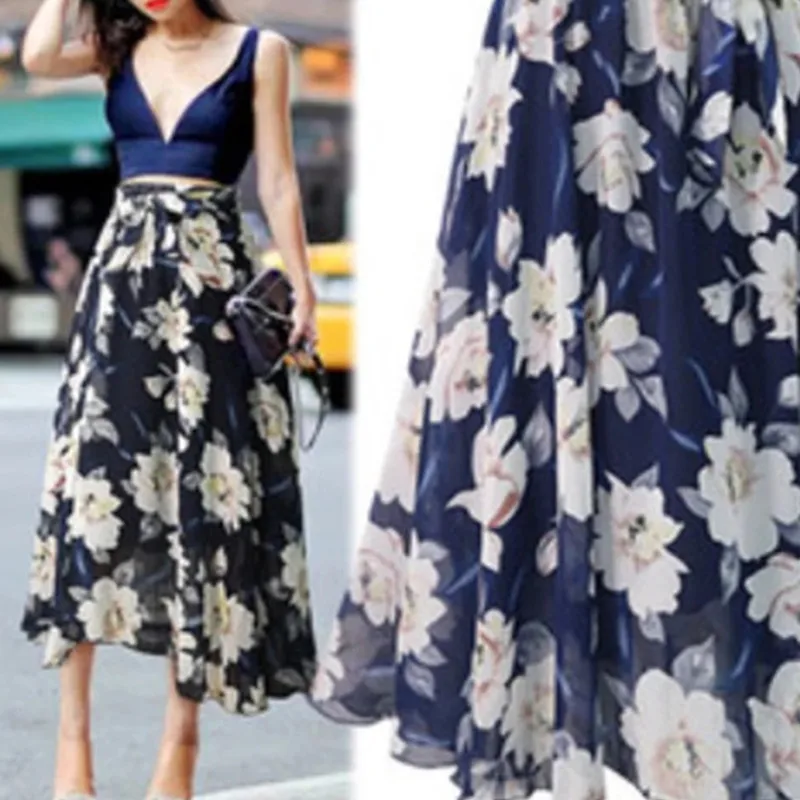 Новый размера плюс для женщин шифоновая юбка в европейском стиле модная обувь с бантом подкладкой на шнуровке; Femme 2021 летняя юбка в стиле ретро с цветочным принтом