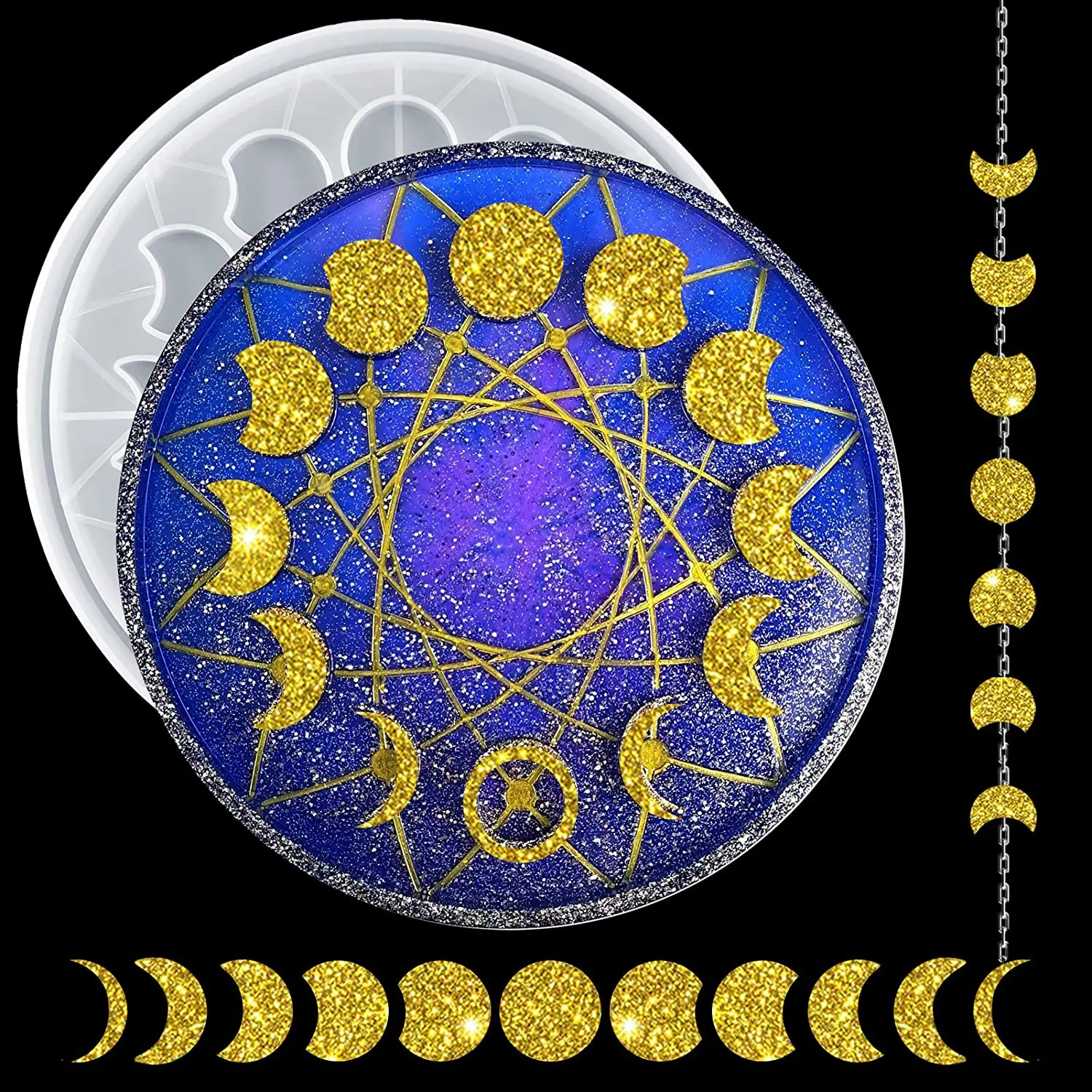 Форма для подноса большой фазы Луны, форма для смолы, часы с лунным затмением и полумесяцем, силиконовая форма для эпоксидной смолы сделай сам, подвеска для изготовления украшений на стену