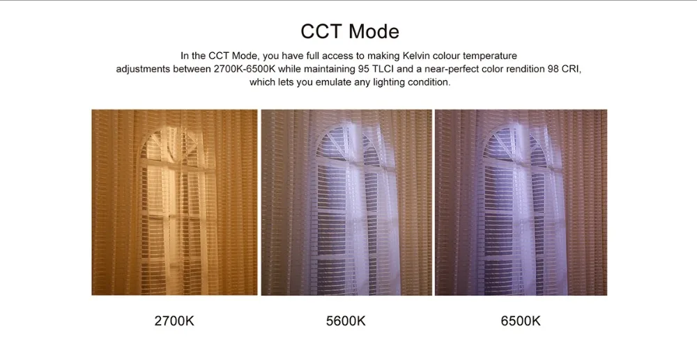 ◆Широкий диапазон CCT(2700K - 6500K) , несколько способов управления