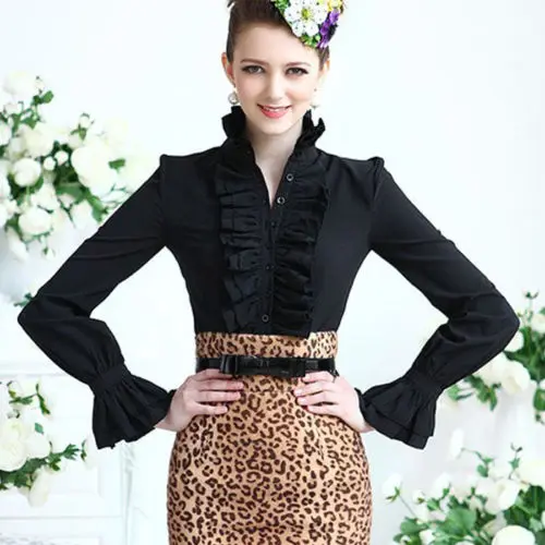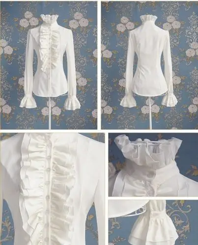 Модная рубашка в викторианском стиле, Женская Офисная белая рубашка для дам, рубашка с высоким воротником, оборками и манжетами