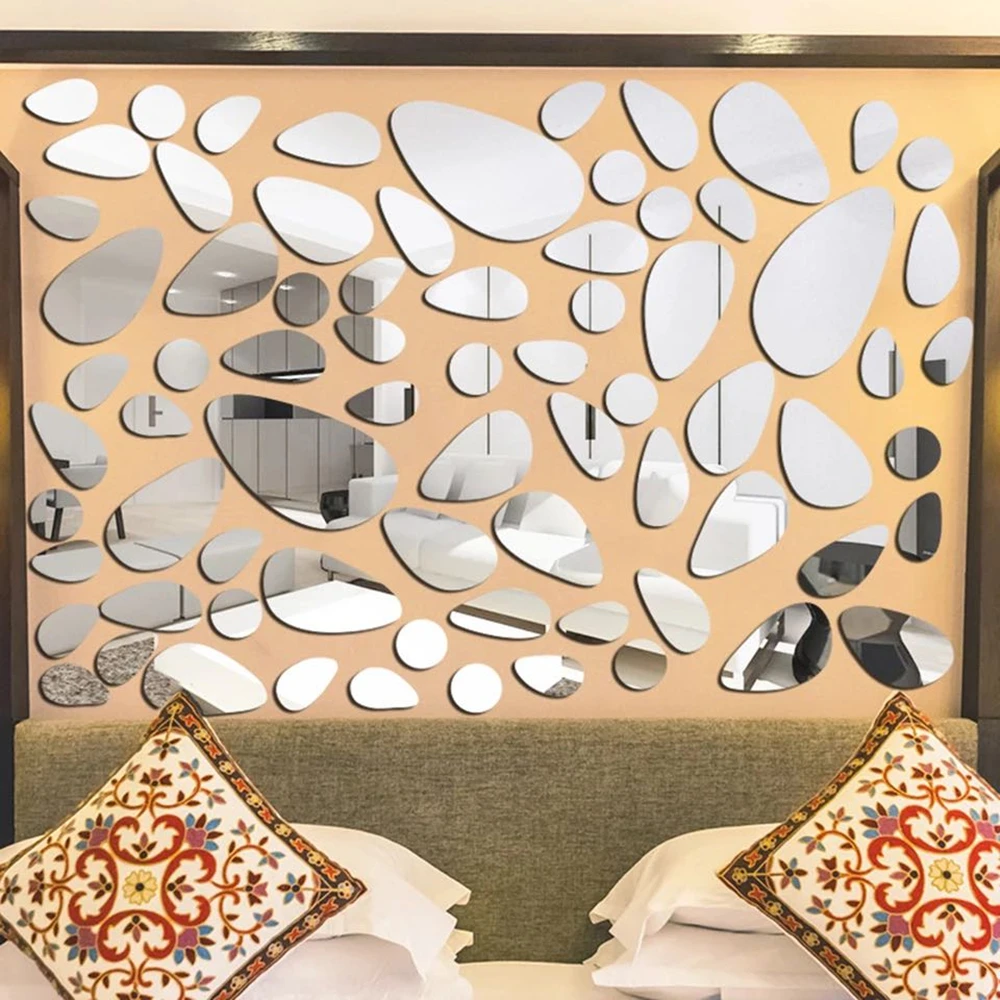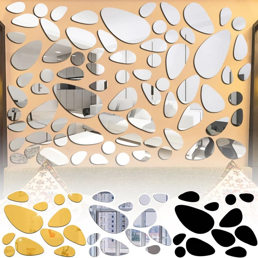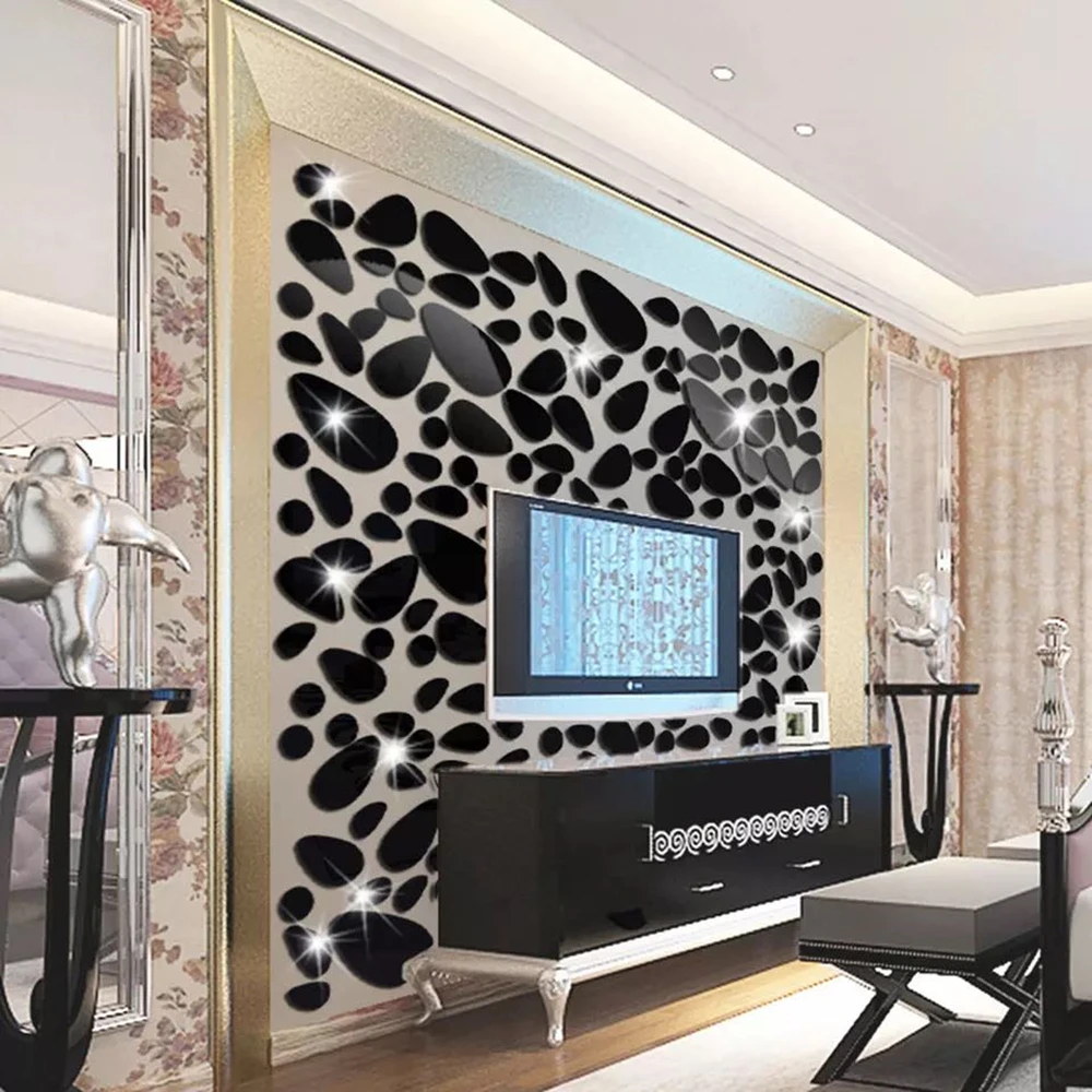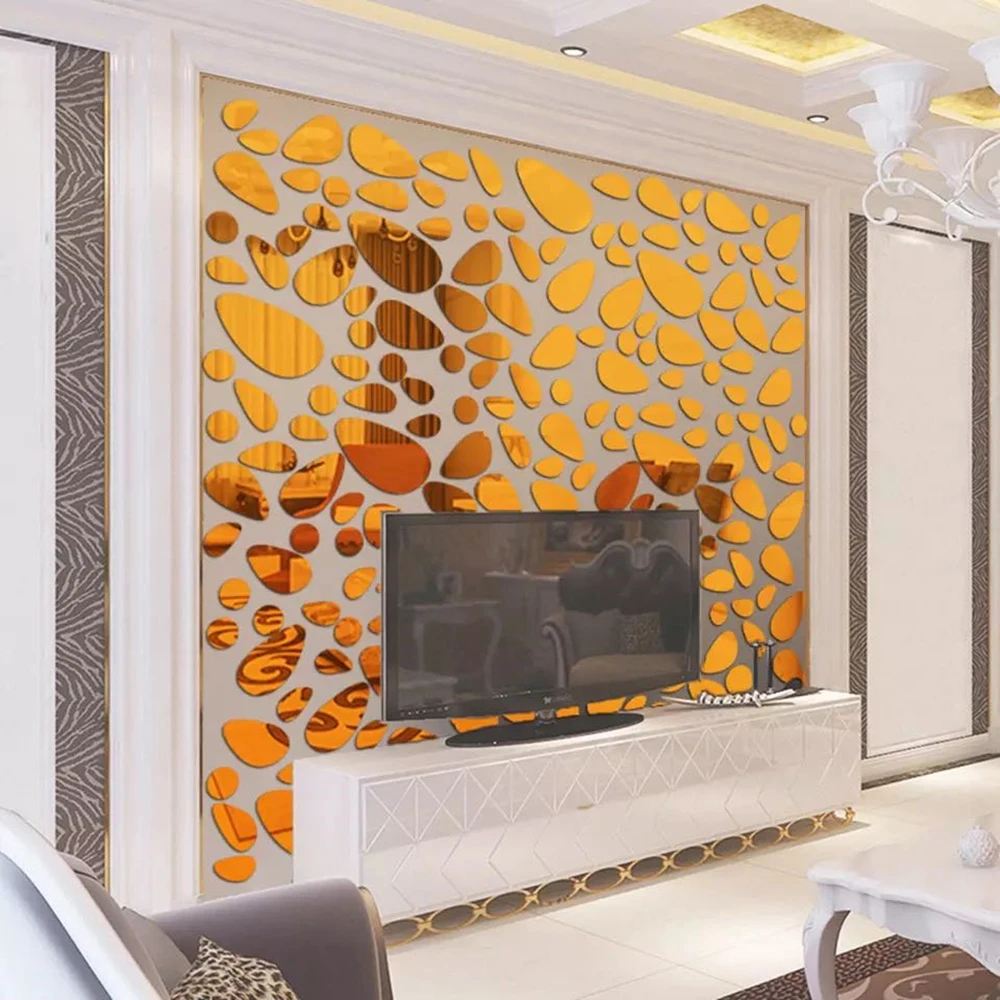 Съемные самоклеящиеся наклейки на стены, 3D наклейки с галькой, зеркальная поверхность, виниловая настенная живопись, украшение для гостиной, украшение для дома, 20 шт.