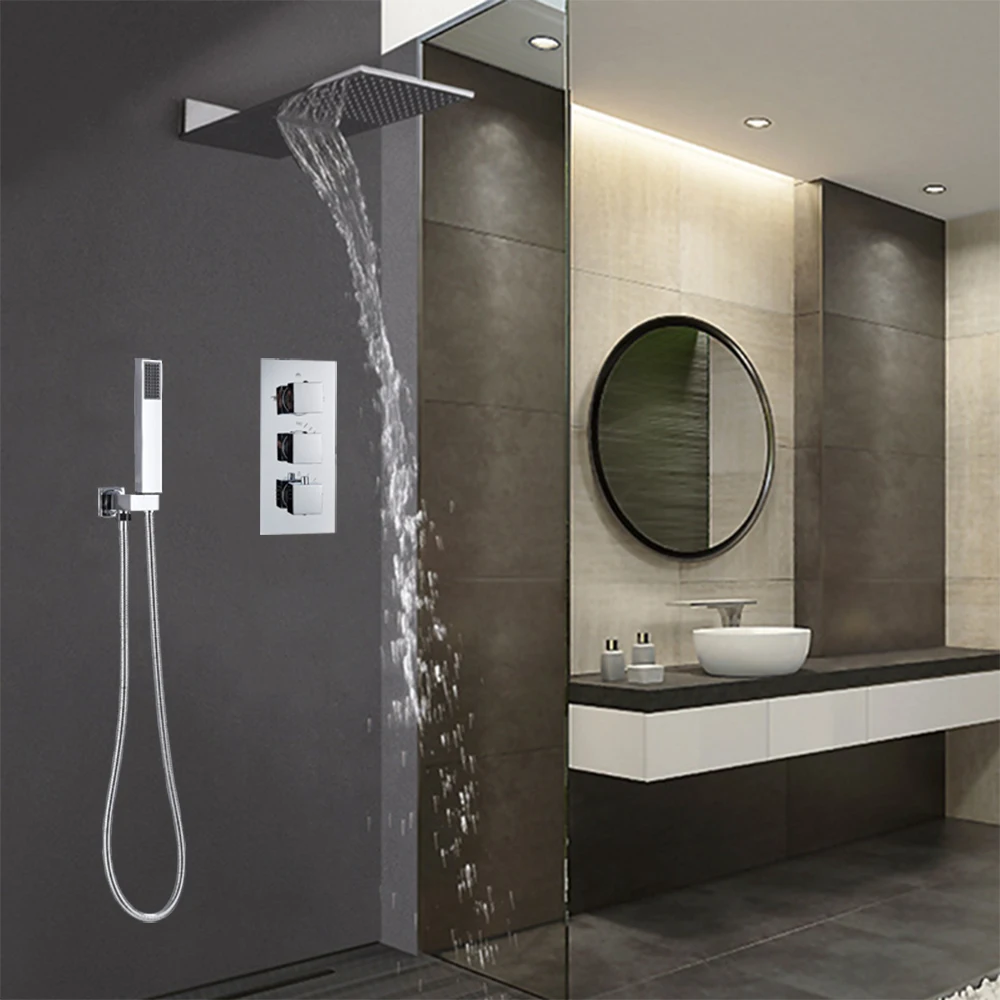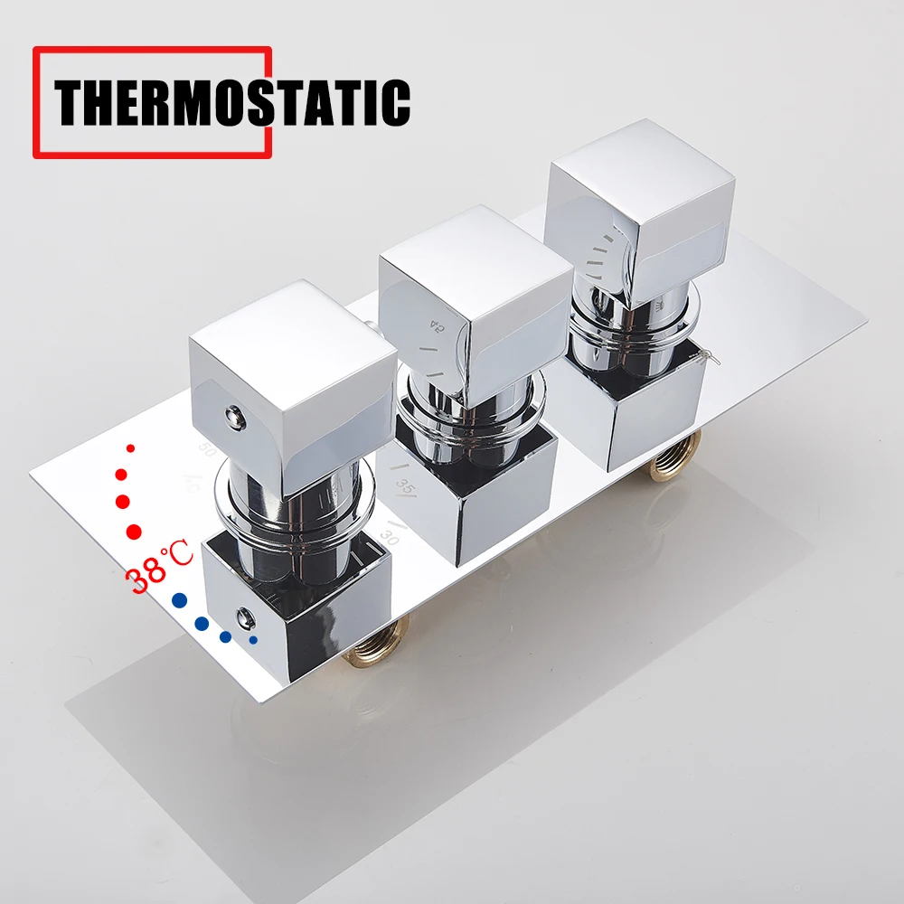 Onyzpily хром термостатический Водопад осадков Ванная комната душевой кран Набор 3-Пути смеситель настенный душ Системы