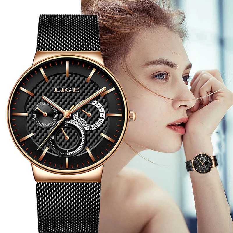LIGE новые женские модные часы, креативные Женские повседневные час...