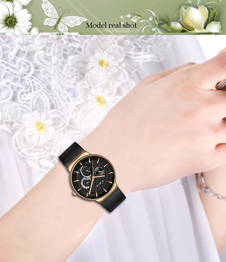 Часы женские кварцевые, с сетчатым ремешком из нержавеющей стали