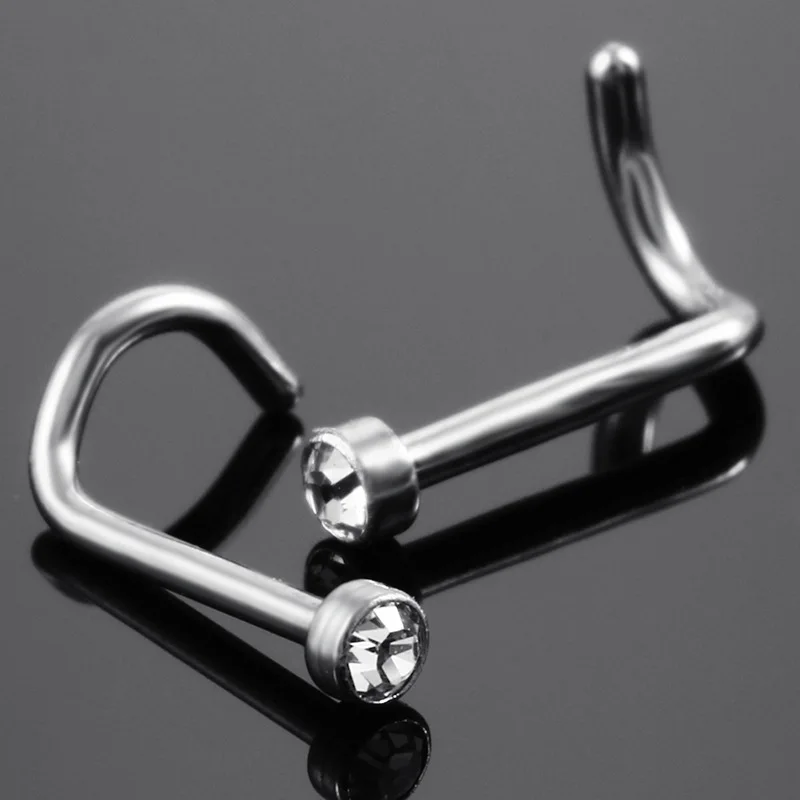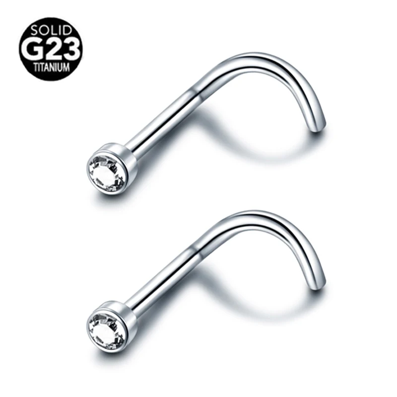 1 шт. ASTM F136 Титан ноздрей носа пирсинг с плоскими драгоценный камень винт носа серьги-гвоздики Нос Кольца пирсинг ювелирные изделия