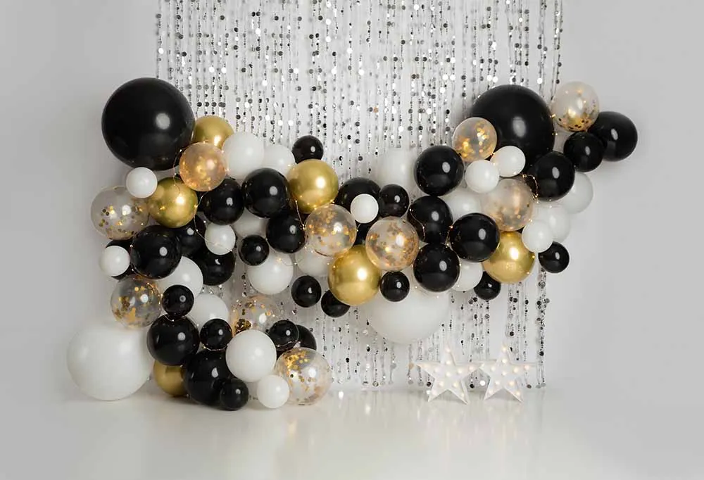 Для маленьких мальчиков и девочек 1st фон для фотографий на день рождения фон для студийной съемки дома, многоярусная юбка фон с серебристыми блестками черного и золотого цвета шары баннер