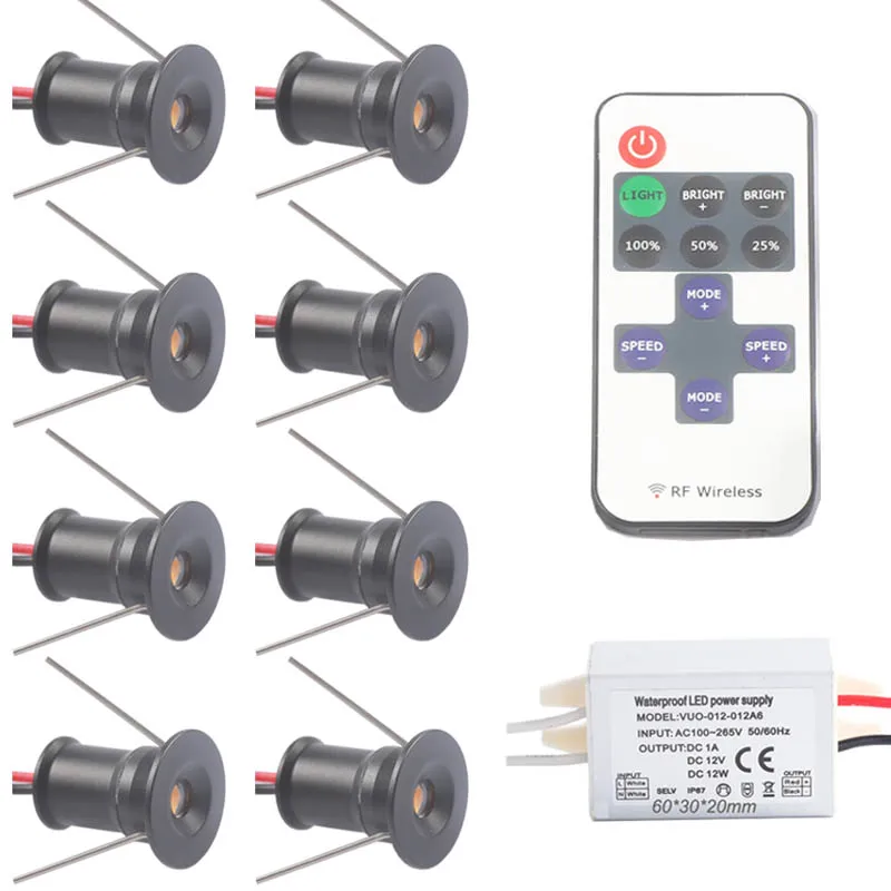 Диммируемый Точечный светильник с блоком питания IP65 1 Вт 12 В, миниатюрный Светодиодный точечный светильник, радиочастотный светильник с дистанционным управлением 15 мм, лампочка для рождественского сада