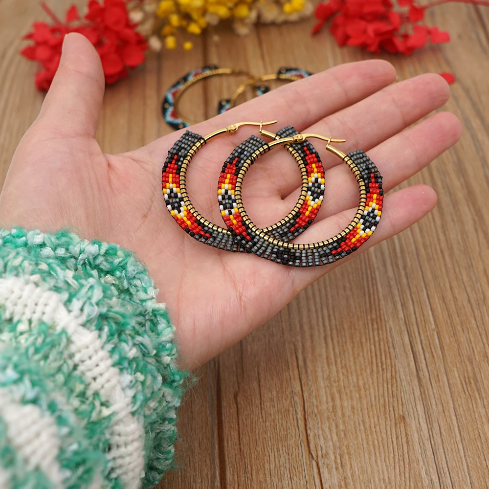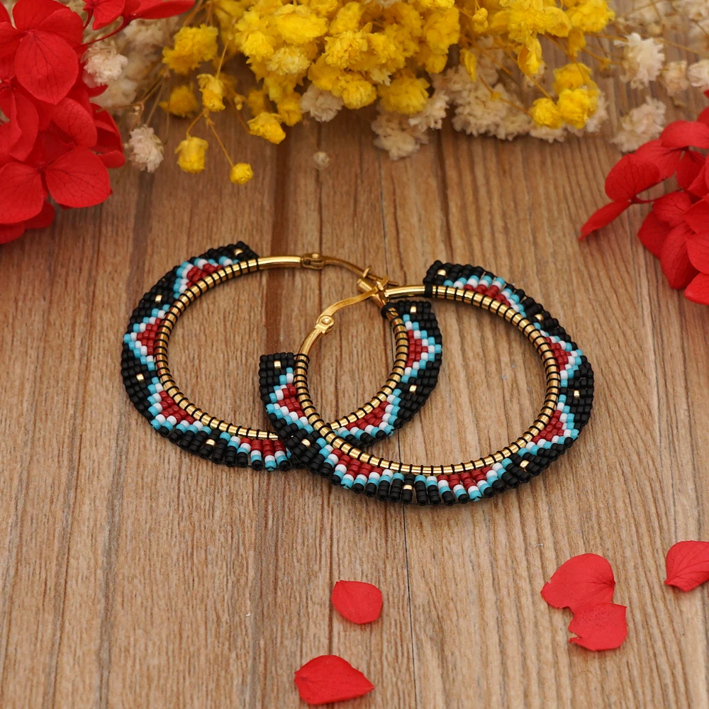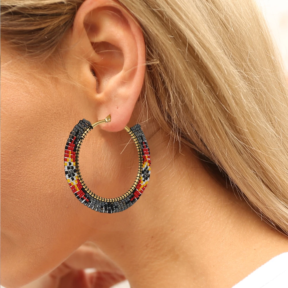 Go2Boho массивные серьги Miyuki серьги в виде колец, с геометрическ...