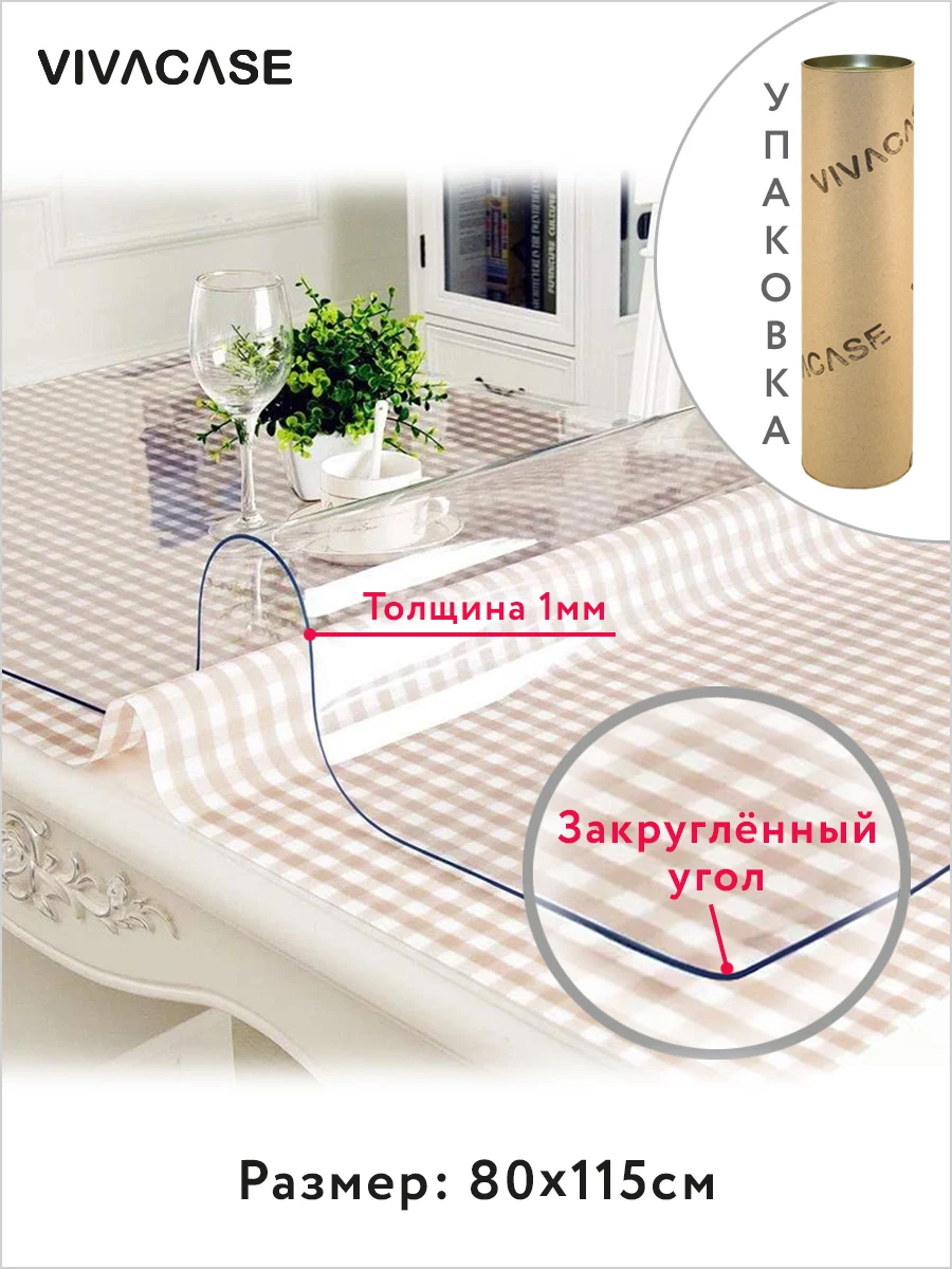 Скатерть на стол Vivacase Прямоугольная, гибкое стекло ПВХ 750x1200...