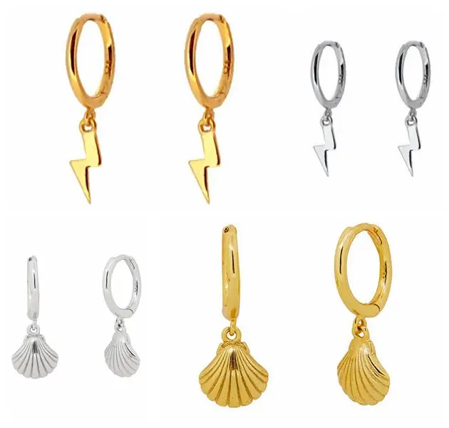 Серьги-кольца женские из серебра 925 пробы, с молнией и ракушками