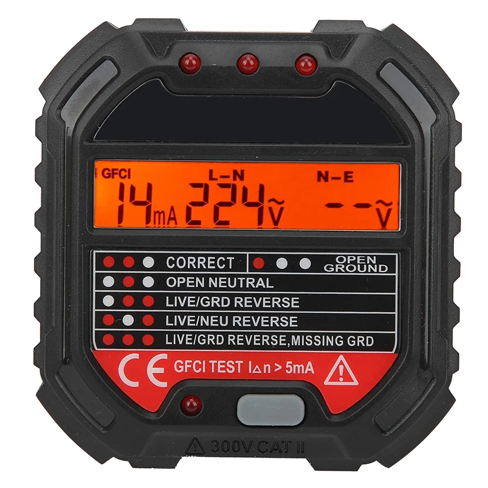 HT107 тестер УЗО Розетки тестер с Напряжение Дисплей 90-250V прибор для проверки патронов автоматической электрической цепи полярности Напряжение детектор
