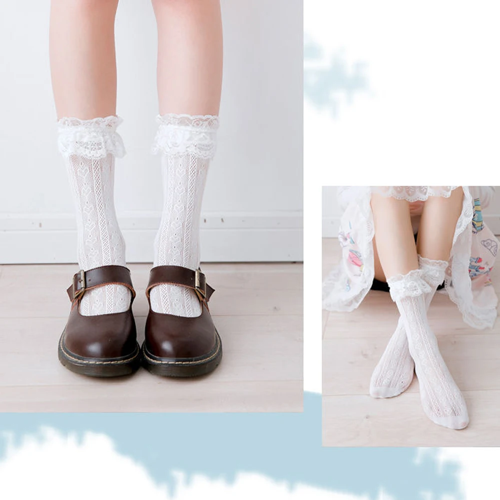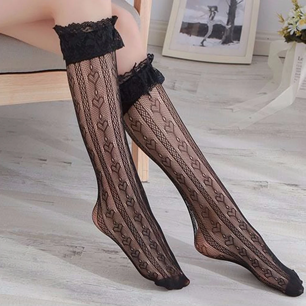 Носки женские кружевные, до колена, черные, белые, с ворсом