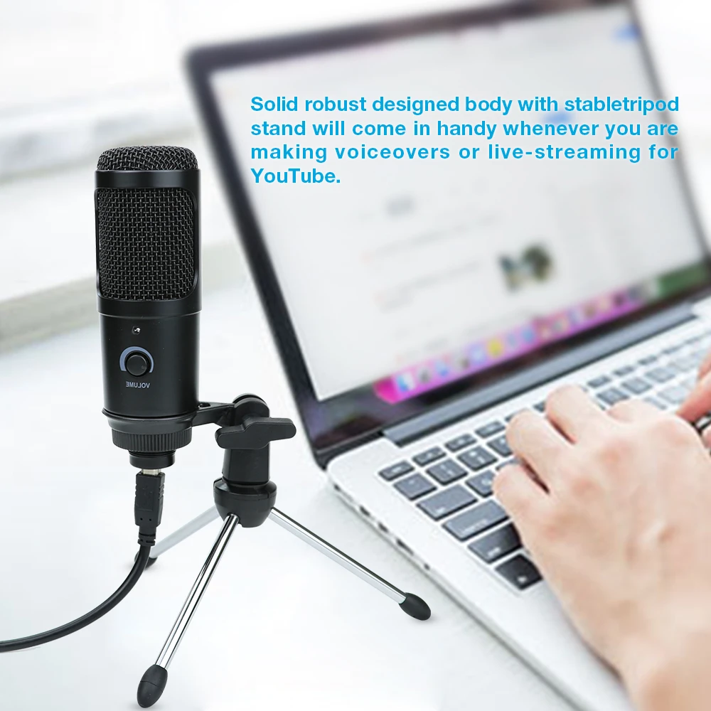 Особенности:* Простота и прямое использованиеС usb-терминалом для питания конденсаторный микрофон не нуждается в звуковой карте или других вспомогательных устройствах.* Максимальное снижение уровня шумаКардиоидный пикап-узор минимизирует фоновый шум и изолирует основной источник звука.* Регулировка громкости ручки* Светодиодный индикатор, светодиодный индикатор будет мигать при подключении, показывая состояние подключения.* Широкий частотный диапазон20 Гц-20 кГц делает голосовые представления четкими, естественными и яркими.Однонаправленный микрофон, минимизирует Окружающий шумС чипом профессионального усилителя вы можете увеличить выходной объем микрофона до 25 разС подставкой, плотно удерживает телефон mirophoneС зажимом, легко закрепить на любом инструментеБольшой конденсаторный микрофон для теплых, насыщенных записейПереключатель защиты от перегрузки, минимизирует искажения от громких источников звукаПереключатель понижения басов снижает уровень шума в помещенииЯркий цвет, модный и освежающий вашу жизнь.Идеально подходит для радиовещательной студии, голосовой звукозаписи, записи и т. Д.Характеристики:Направленность: всенаправленныйМатериал микрофона: металл, пластикЧастотная характеристика: 20 Гц-20 кГцЧувствительность:-34 дБ ± 2 дБЭквивалентный уровень шума 16 дБАРежим питания: USB DC5VИнтерфейс USB: USB 2,0Отношение сигнал-шум: 78 децибелСовместимость: Windows XP/Vista/7/8/10/MacДлина кабеля: 2,5 мРазмер цветной коробки: 21*14,5*6 смПосылка включает в себя:1 X Микрофон 135*45 мм1 х Черная металлическая подставка для штатива1 X Черный usb аудио кабель 2,5 мРуководство пользователя на английском языке-1 шт.