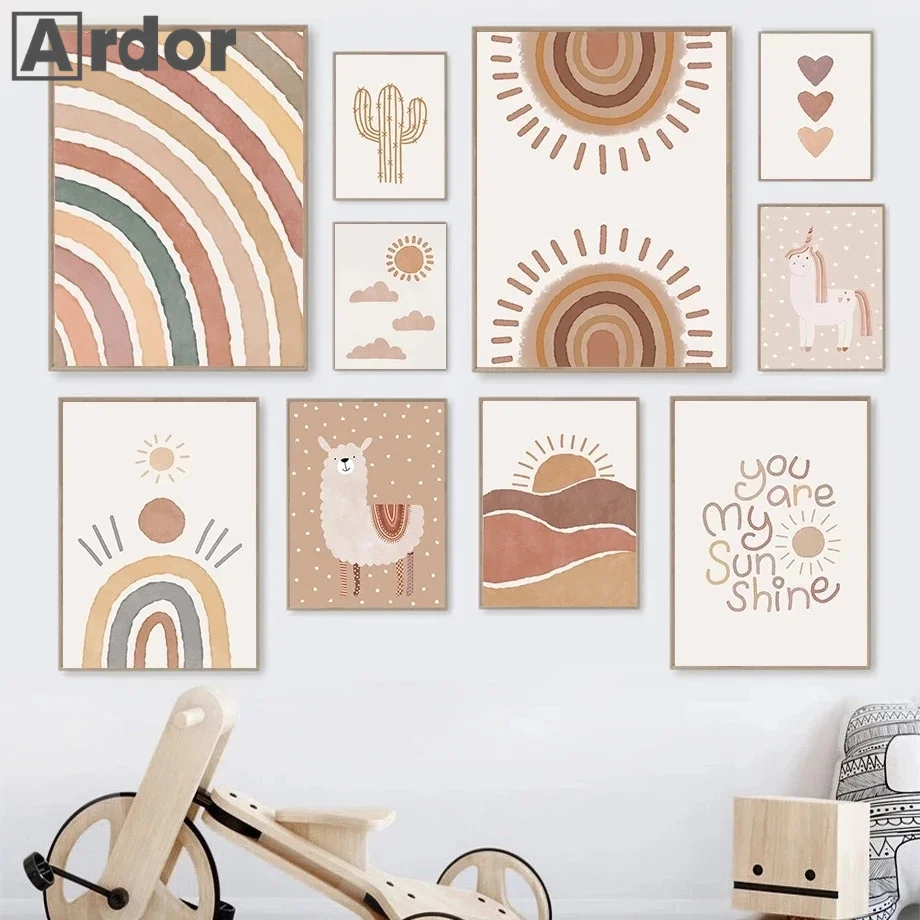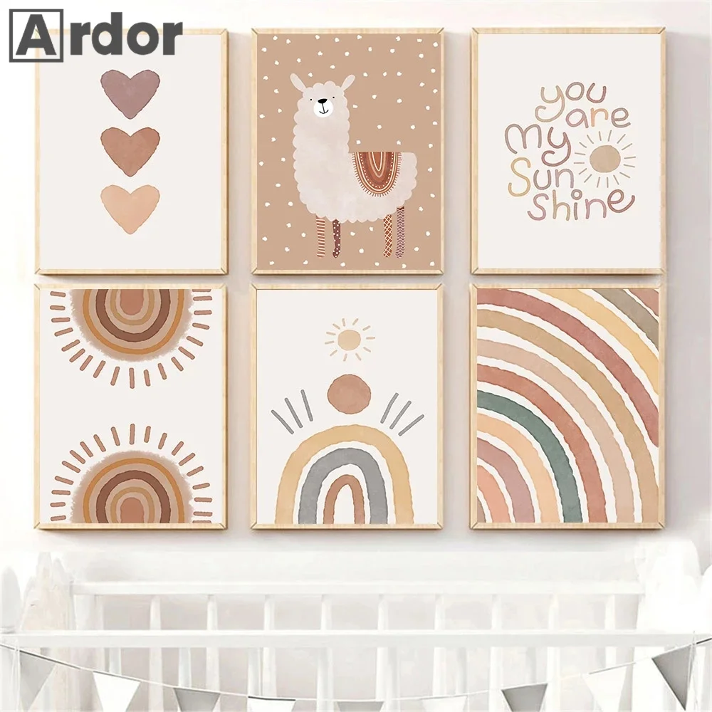 Настенный постер в стиле бохо с радужным сердцем, единорогом, медведем, Художественная Картина на холсте с цитатами, абстрактные принты для детской комнаты, домашний декор в стиле бохо