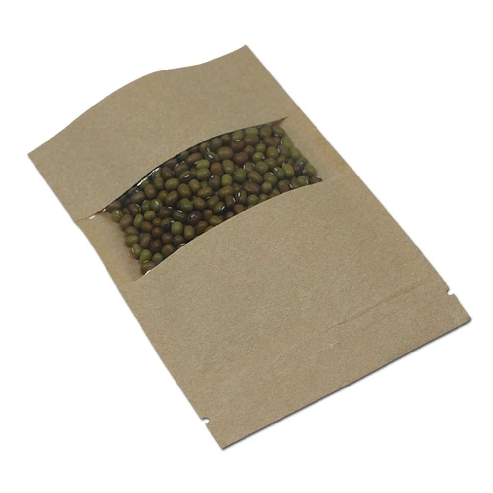 50 шт.лот коричневый упаковочный пакет из крафт-бумаги, прозрачный пакет с застежкой-молнией, самозакрывающийся пакет для хранения сушеных цветов и чая