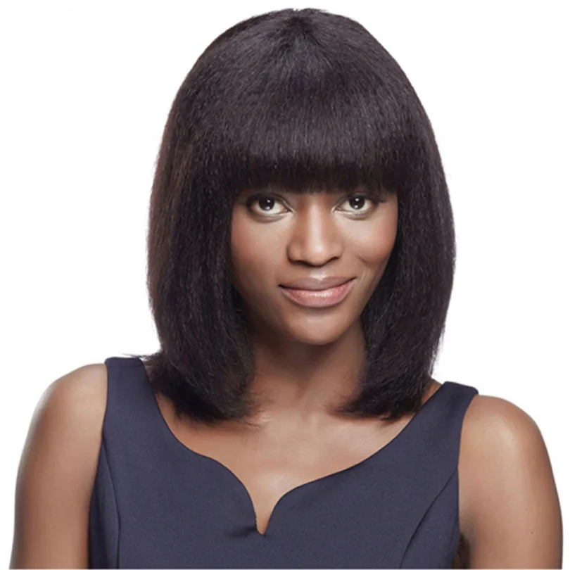 Короткие курчавые прямые человеческие волосы, парики с челкой, волосы для кожи головы, машинные парики, грубые прямые Yaki для женщин, 12 дюймов, плотность 150%