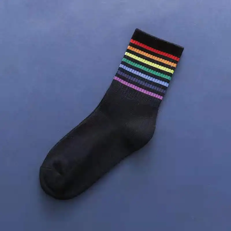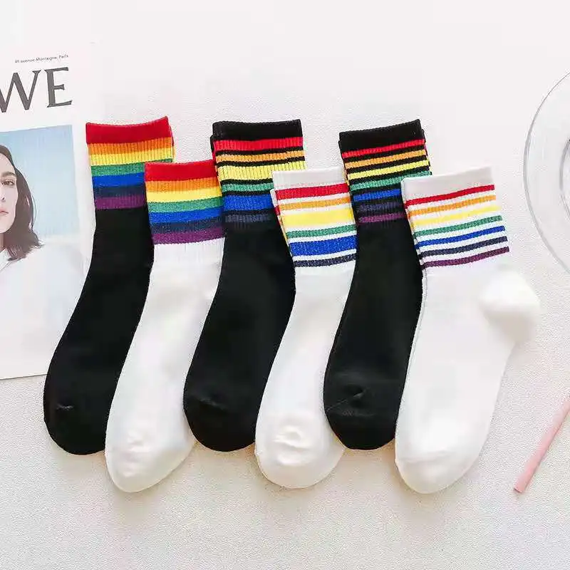 1 пара модных носков из хлопка с радужными полосками, рождественский подарок, Классические Теплые повседневные забавные корейские носки для женщин Размер: 34-39