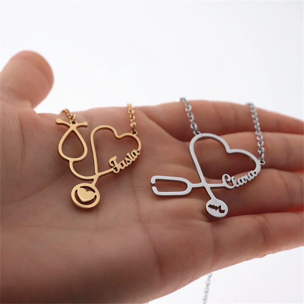 Ожерелье с именем стетоскопа в форме сердца, персонализированная табличка с именем на заказ, женское украшение, колье-чокер