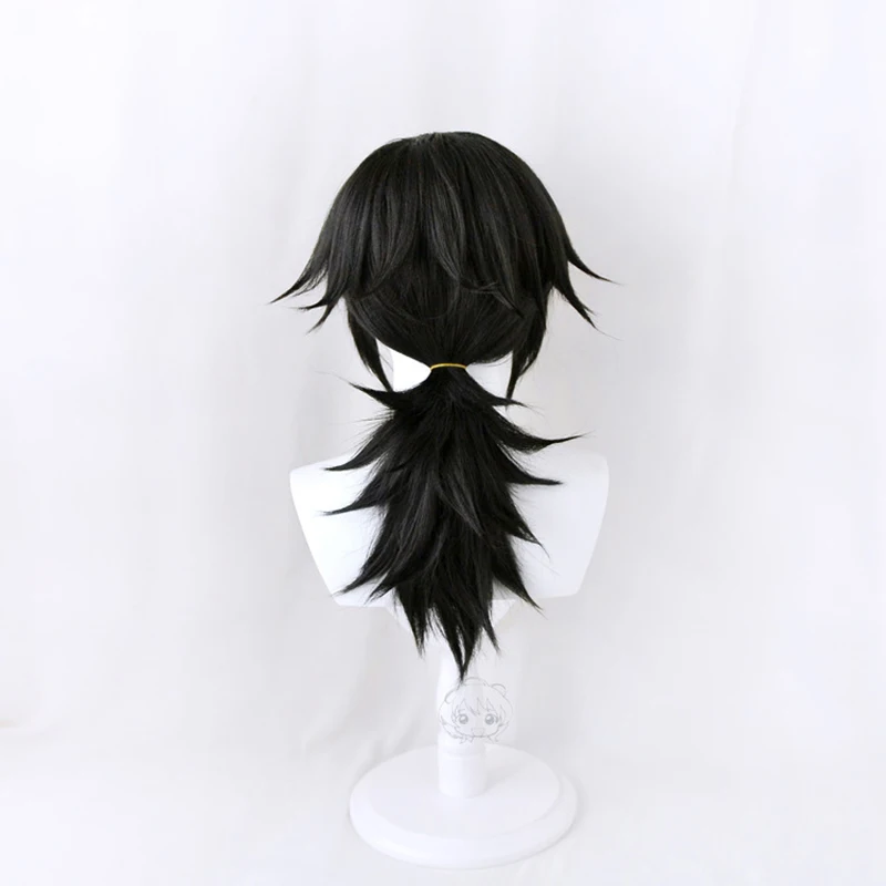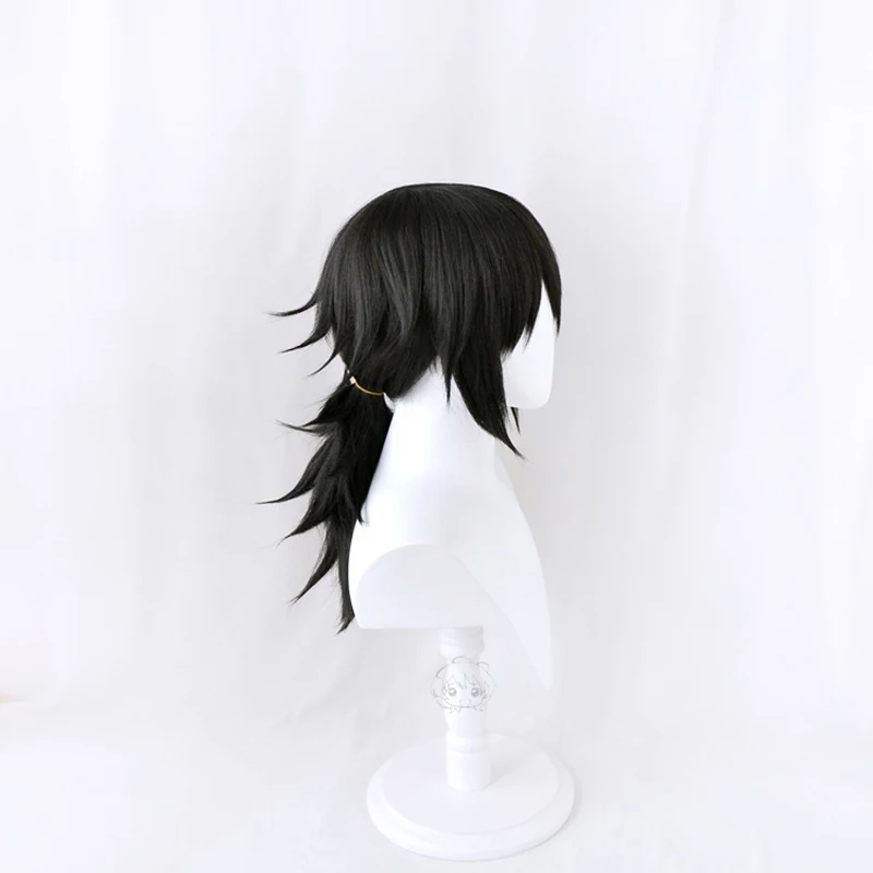 Парик для косплея Tomioka Giyuu из черного конского хвоста, термостойкие синтетические волосы для мужчин и женщин, мужские парики