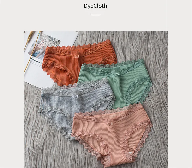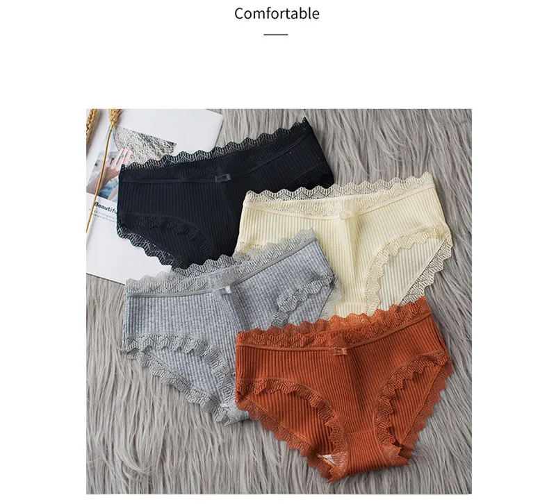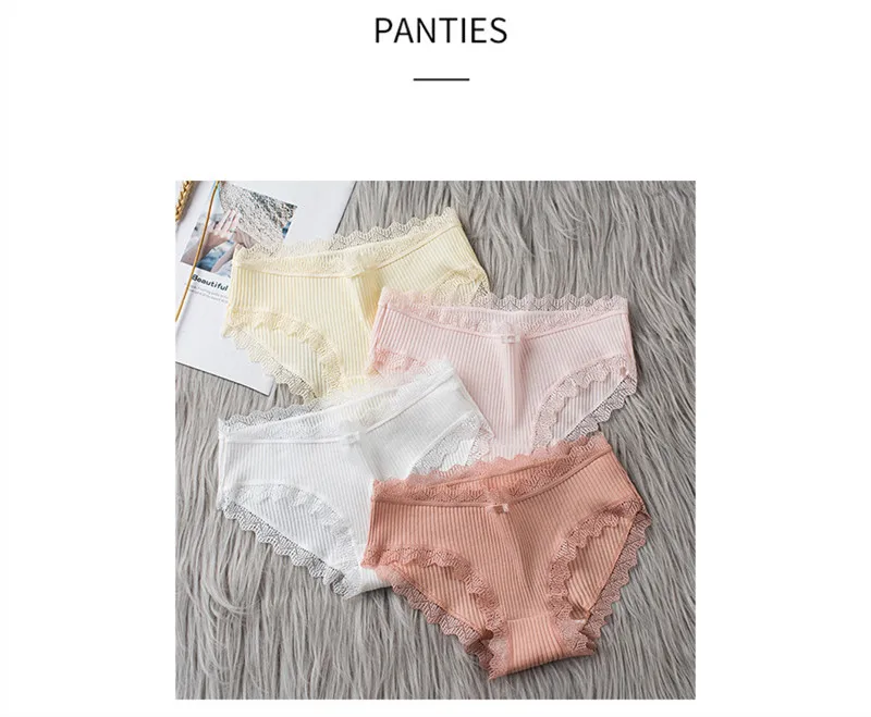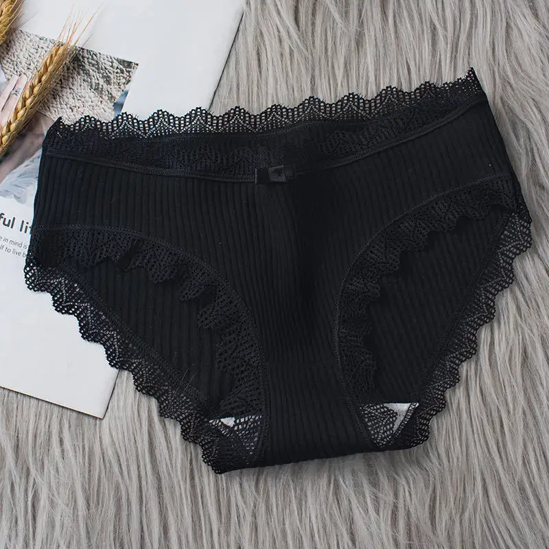 Женское нижнее белье средней талии, однотонные ребристые кружевные ...