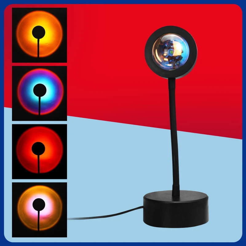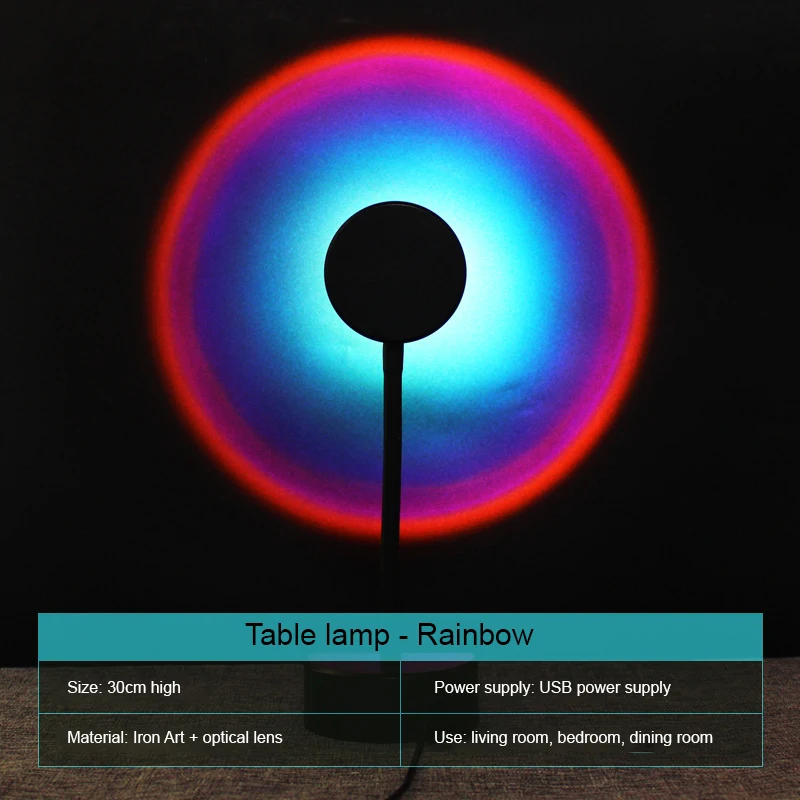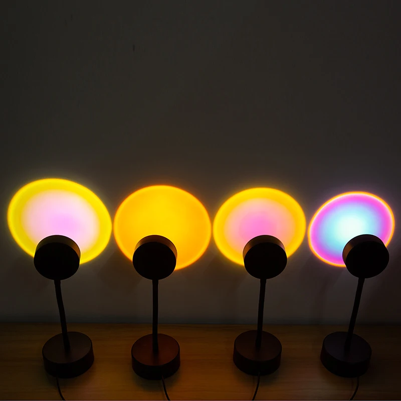 Проектор с радужным закатом, атмосфера, USB, ночник, проекционный светильник для кофейни, спальни, милый светильник с закатом, украшение для стен и дома