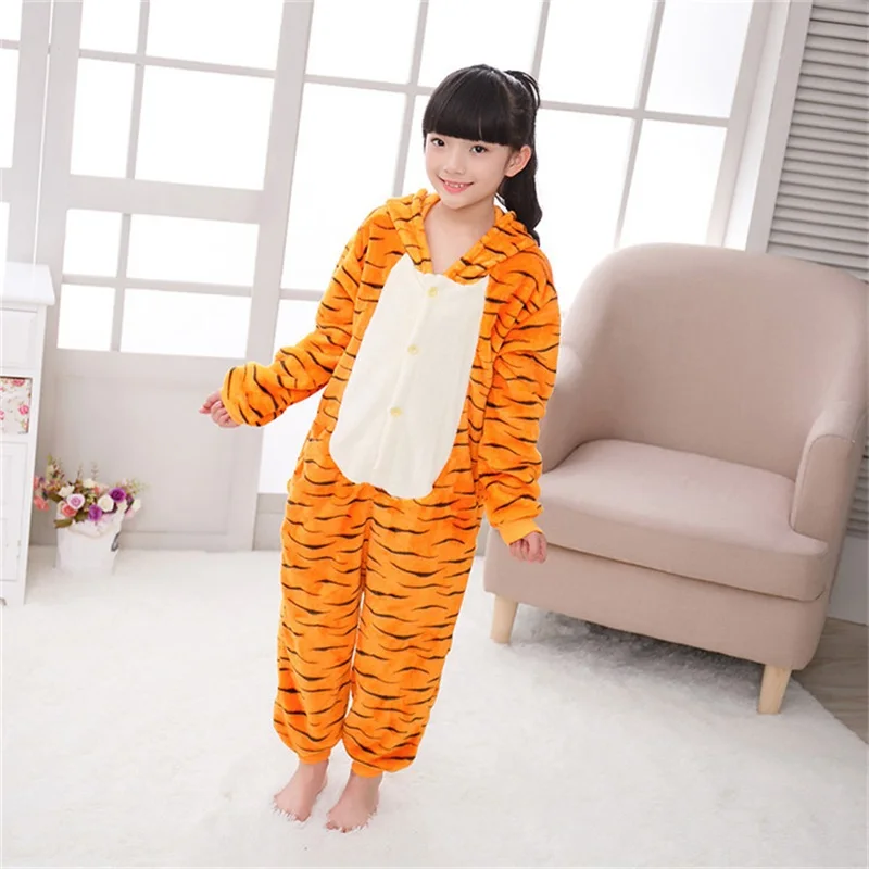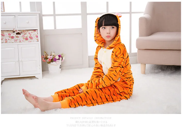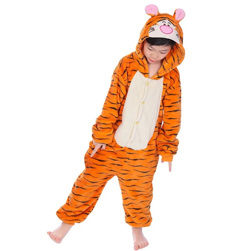 Пижама-комбинезон в виде тигра, Детская Пижама-кигуруми с изображением животных из мультфильма, забавная Милая теплая Фланелевая Пижама
