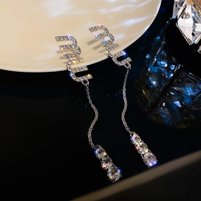 Корейские очаровательные серьги-кисточки с кристаллами и буквами мм для женщин, модные длинные серьги-подвески, роскошные ювелирные изделия