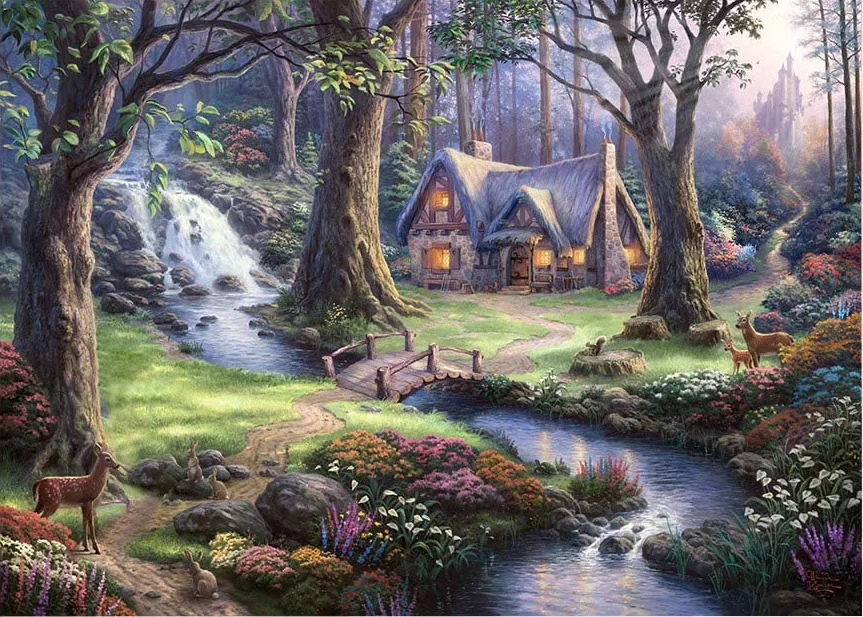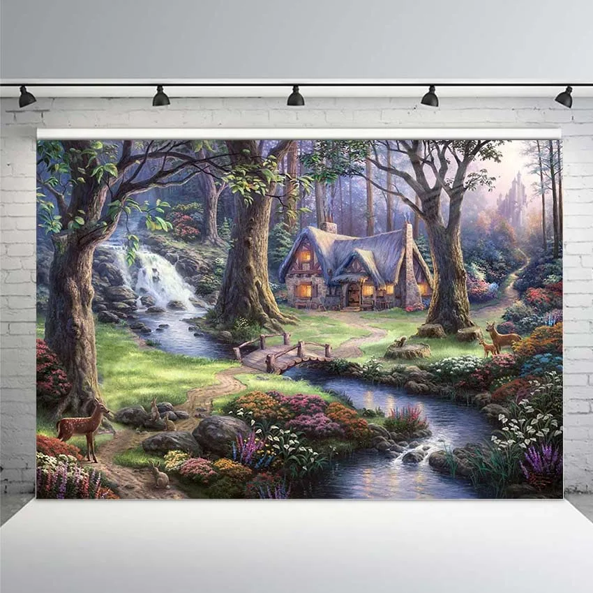 Домик в лесу фон сказочная сказка сказочная ручка олень Эльф принцесса Сказочный коттедж фон для фотосъемки