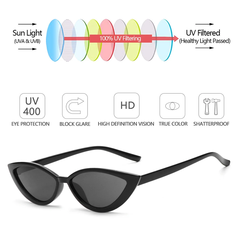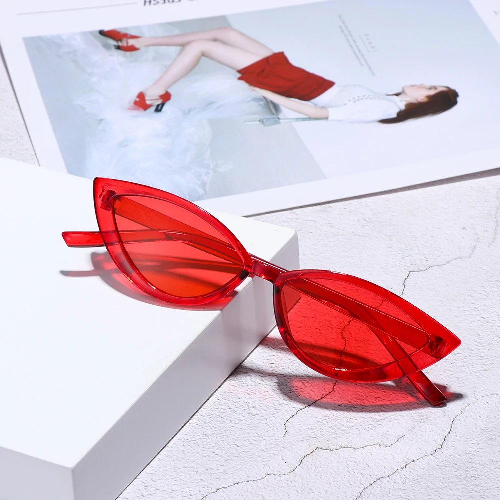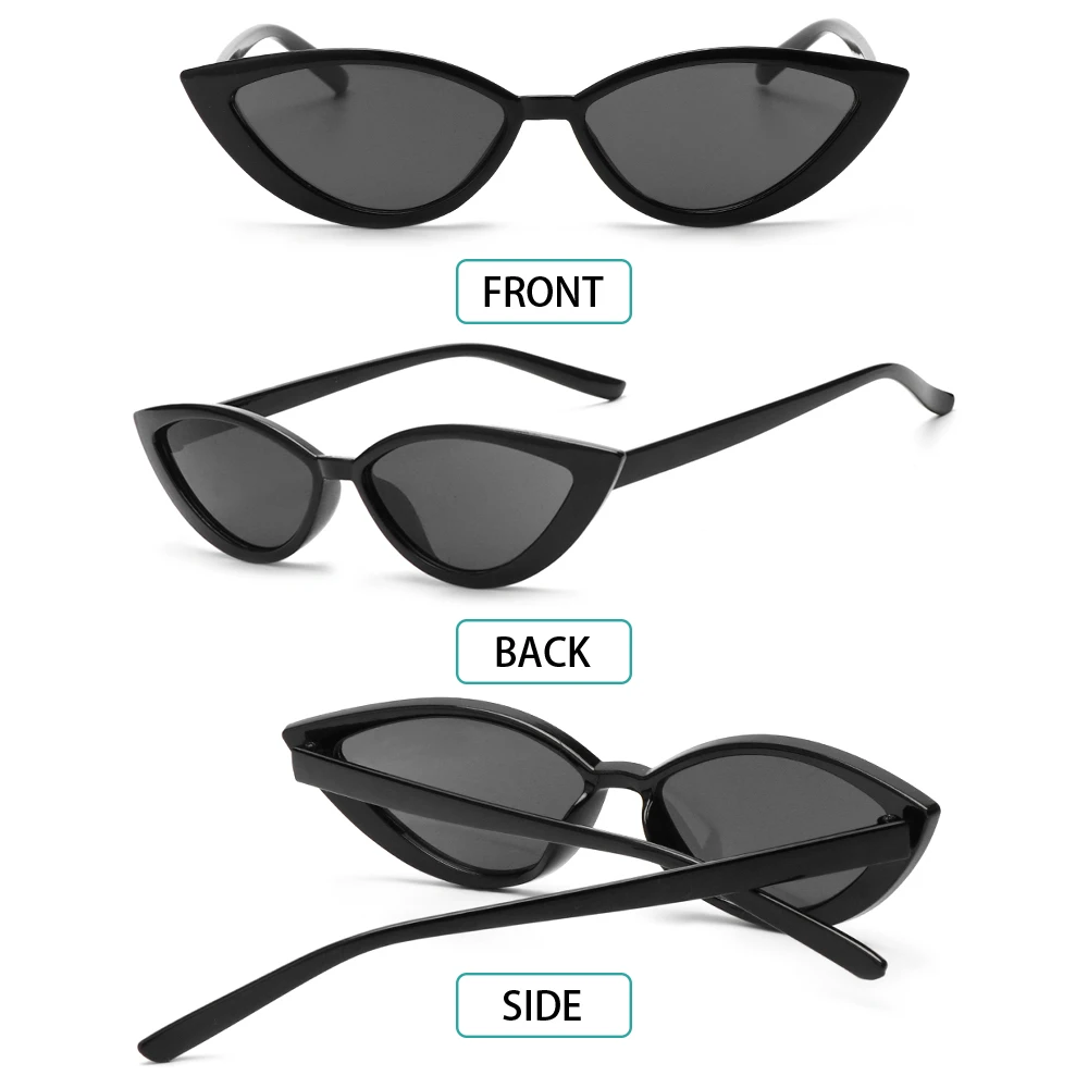 Солнцезащитные очки кошачий глаз женские с узкими боковыми линзами, пикантные модные трендовые очки в ретро-стиле, с маленькой оправой, UV400, черные, лето
