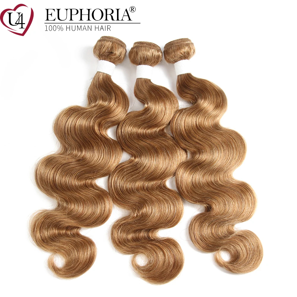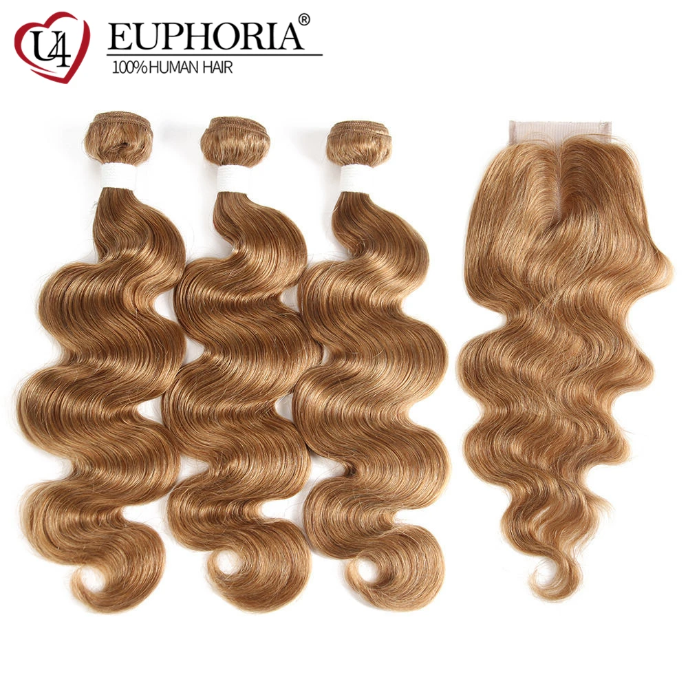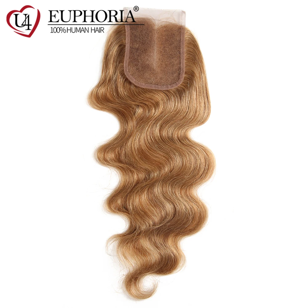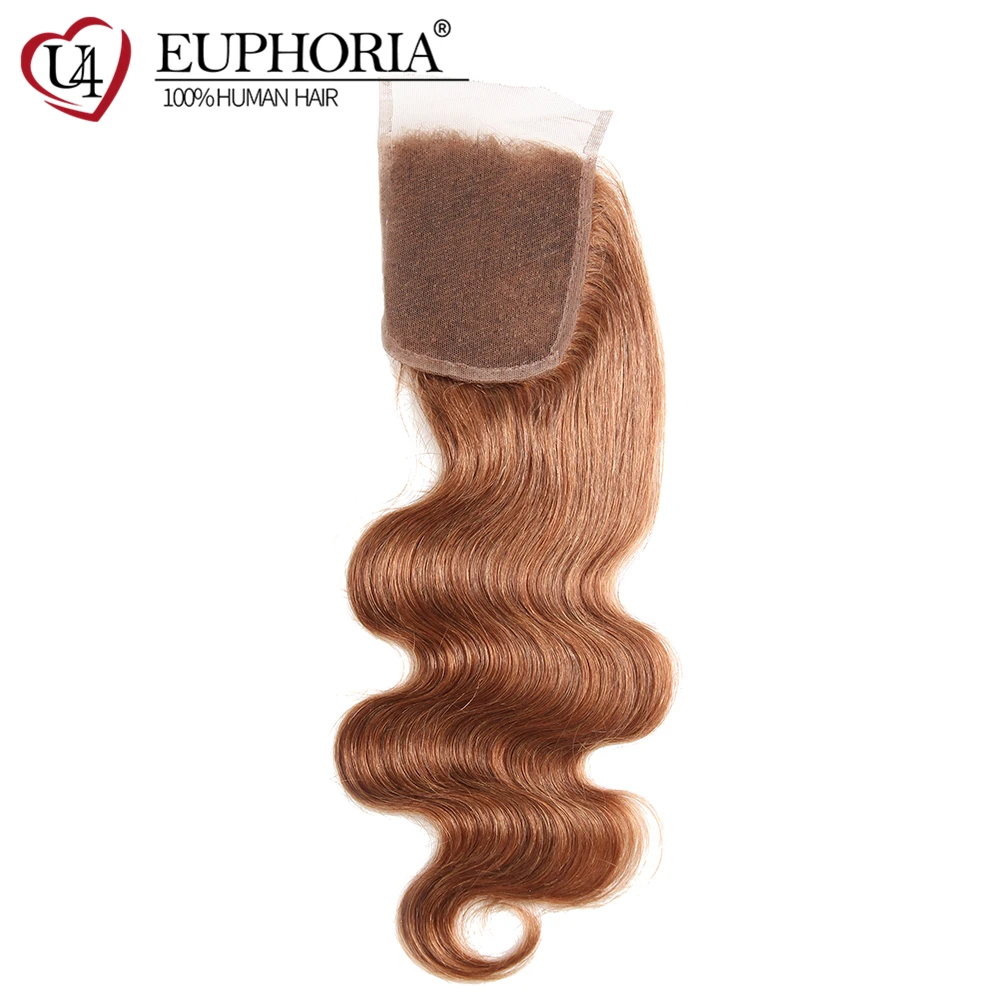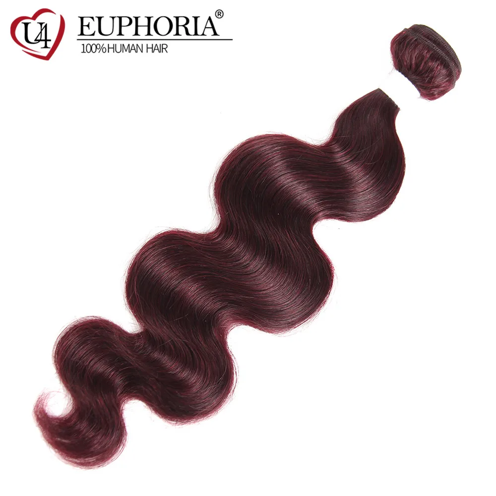 Коричневые 33 пупряди волос с закрытием, волнистые бразильские человеческие волосы Remy, 3 пряди с кружевной застежкой 4x4, Burg красного цвета, Эйфория