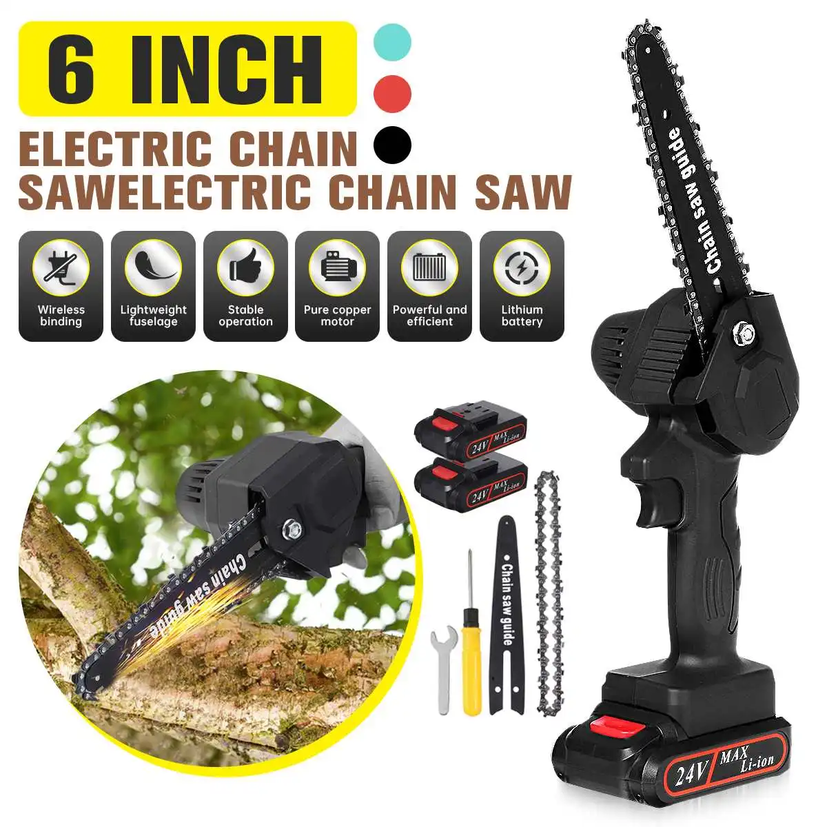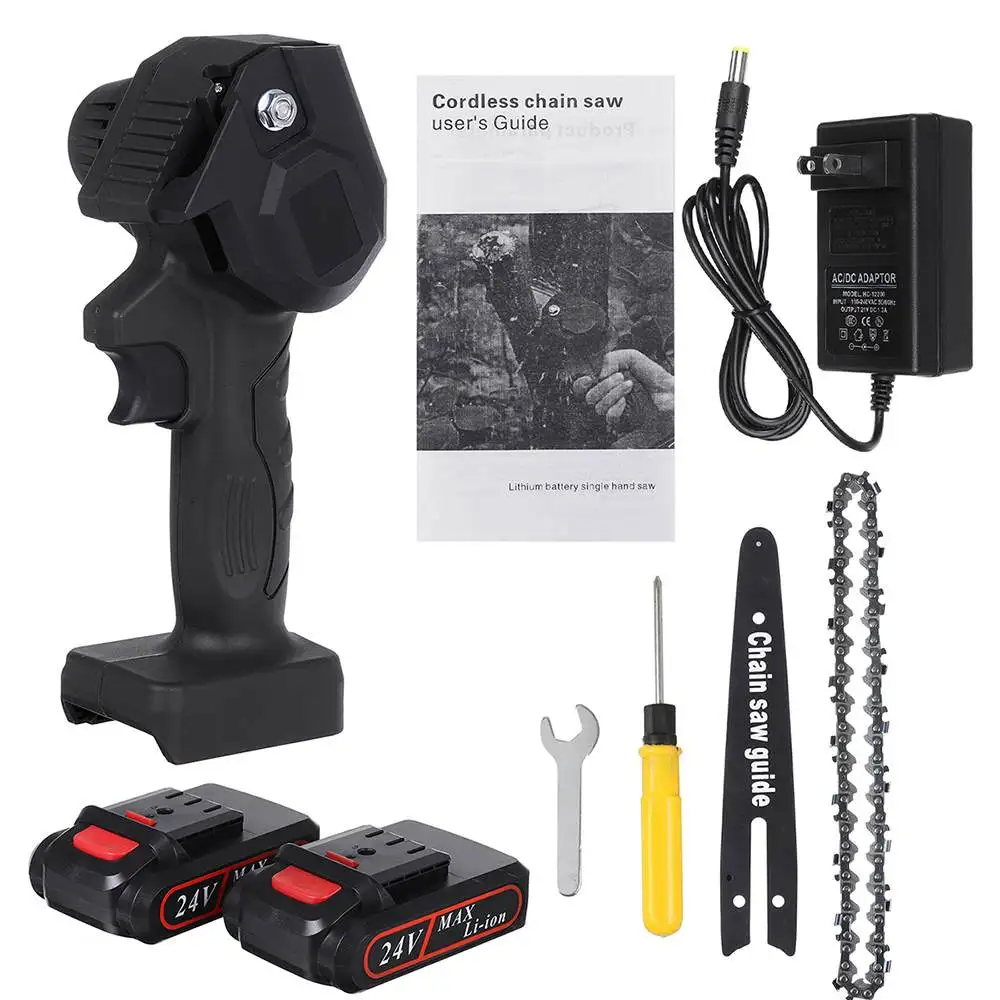 Электрическая цепная мини-пила для обрезки деревообработки, 550 Вт, 6 дюймов, 24 В, С 2 литиевыми аккумуляторами