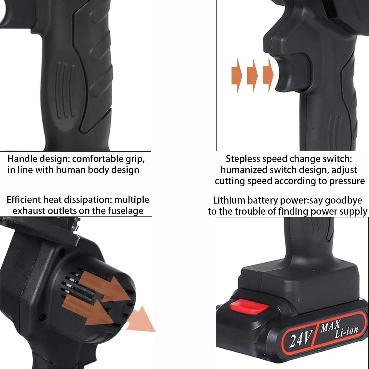 Характеристика:1. Беспроводная Привязка: Легкая наружная резка.2. Электрическая пила для обрезки: Добавьте верхнюю перегородку, увеличьте коэффициент безопасности.3. Мощный магнитный двигатель: 1200 Вт, мощная мощность, длительный срок службы.4. Дизайн ручки: удобный захват, в соответствии с дизайном человеческого тела.5. Мощность литиевой батареи: Попрощайтесь с проблемой поиска источника питания.6. Простота в использовании: Нет необходимости разбирать, поверните винт, чтобы отрегулировать герметичность цепи.7. Высококачественная направляющая цепь: острая износостойкая, глубокая закалка более износостойкая, гладкая резка.8. Понижающий переключатель скорости: гуманизированный дизайн переключателя, регулировка скорости резки в соответствии с давлением.9. Эффективное рассеивание тепла: конструкция нескольких выпускных выходов на фюзеляже может эффективно предотвратить горение.10. Светильник весовой фюзеляж: светильник и портативный, с одной рукой, удобно держать, не уставать, чтобы держать в течение длительного времени.11. Безопасная защита перегородки: Комплексная защита, будьте уверены, резка для предотвращения искровых опилок и других брызг.12. Четыре интеллектуальных функции защиты: защита от перегрузки по току, защита от перенапряжения, защита от перегрева, защита от зарядки и разрядки, автоматическое отключение высокой температуры.