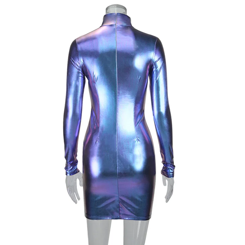 Блестящее металлическое светящееся голографическое платье, сексуаль...