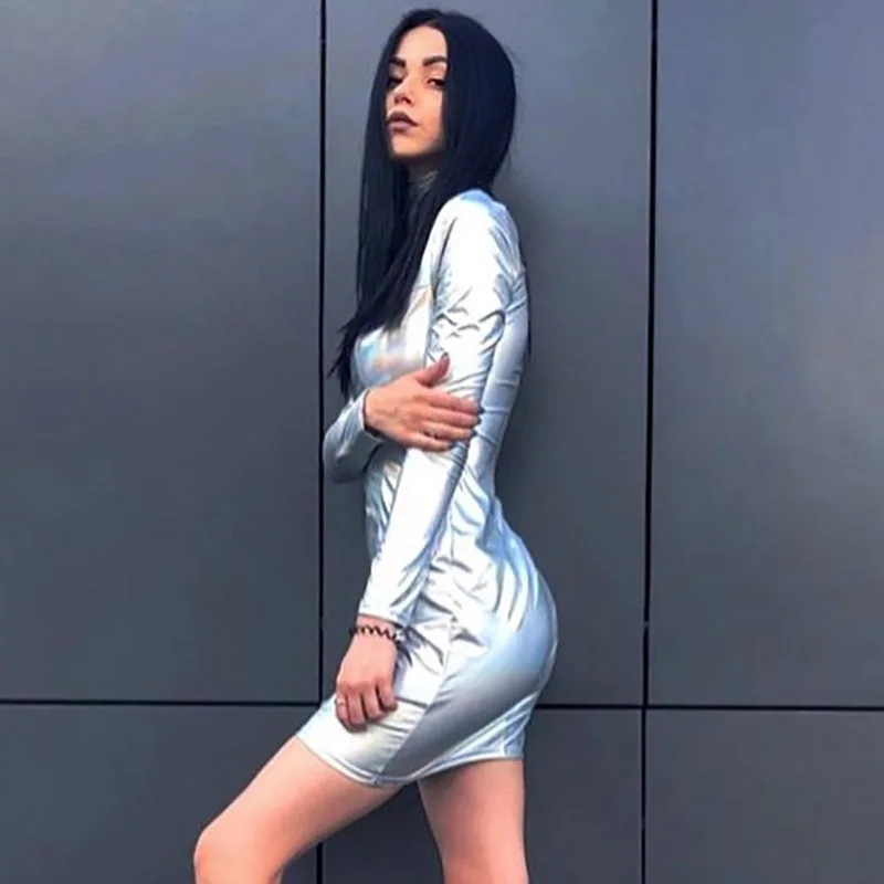 Женское мини-платье с высоким воротником Julissa Mo, с длинным рукавом и лазерной вспышкой, облегающее платье для вечерние ны и лета, 2021