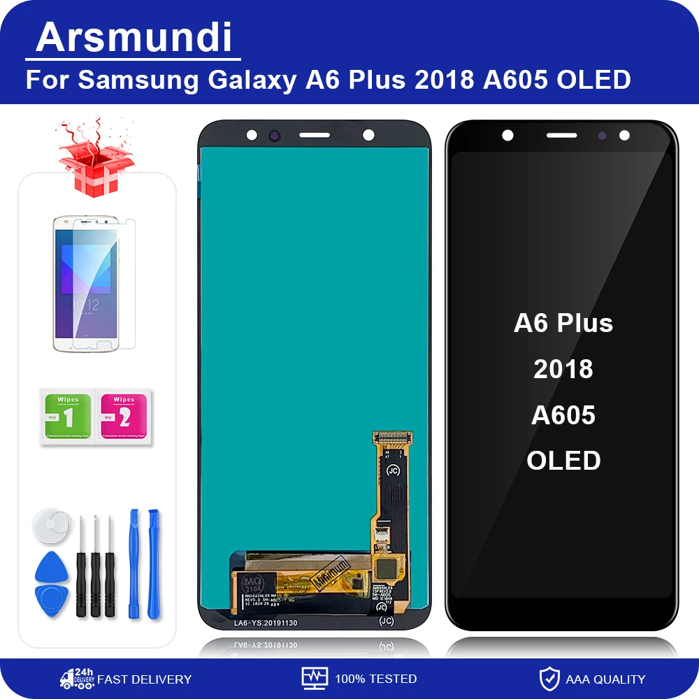 ЖК-дисплей AMOLED для Samsung Galaxy A6 Plus 2018 A605, сенсорный экран с дигитайзером в сборе для Samsung A605F A605FN