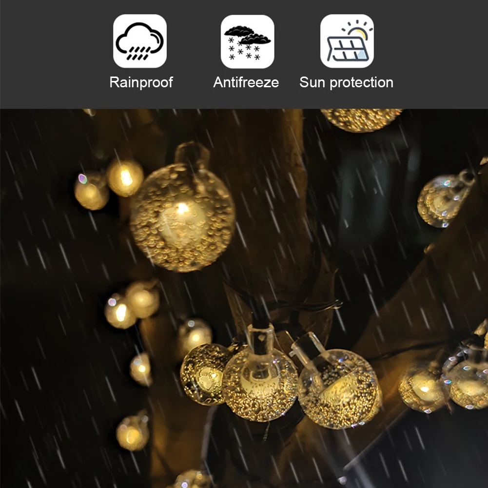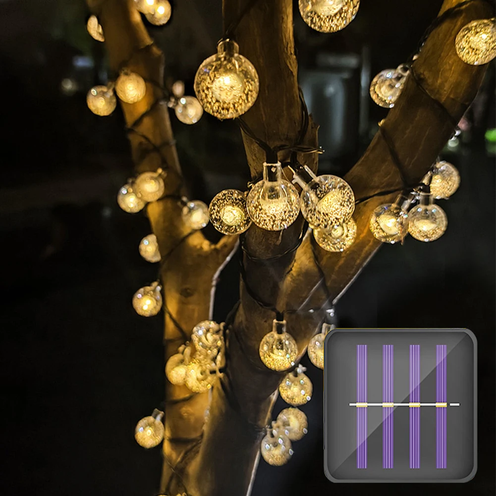 Светодиодная лампа в форме хрустального шара, уличный шнурок с лампочками на солнечной батарее для Рождественского украшения сада, гирлянды на солнечной энергии, 12 м, 50100 светодиодов