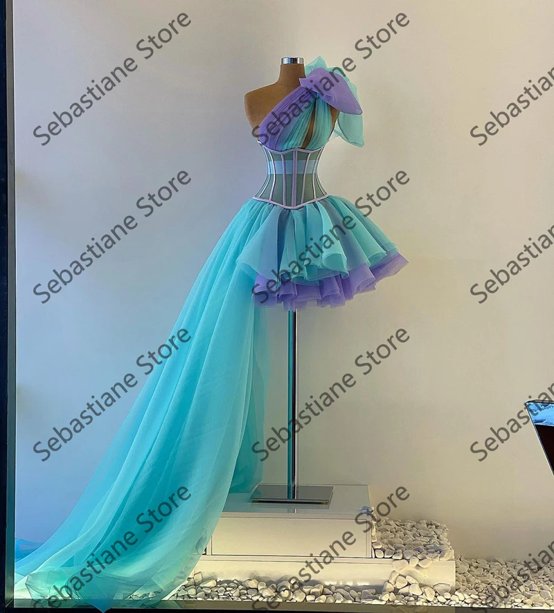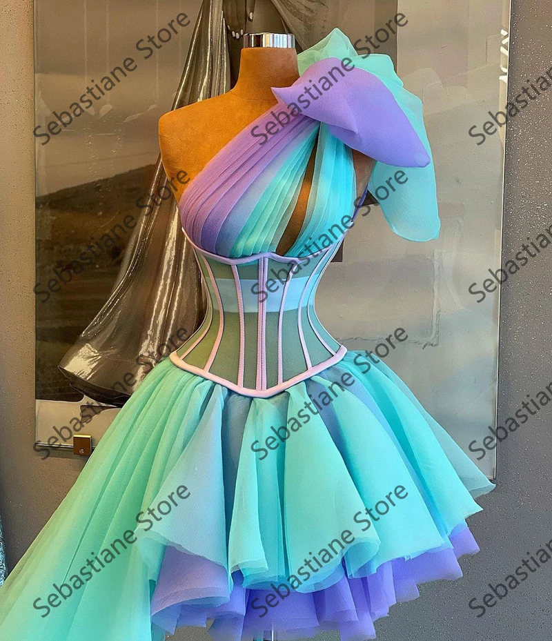 Красочные Короткие платья для выпускного вечера с боковым шлейфом на одно плечо бантом на плече оборками индивидуальный пошив женское элегантное вечернее Вечерние